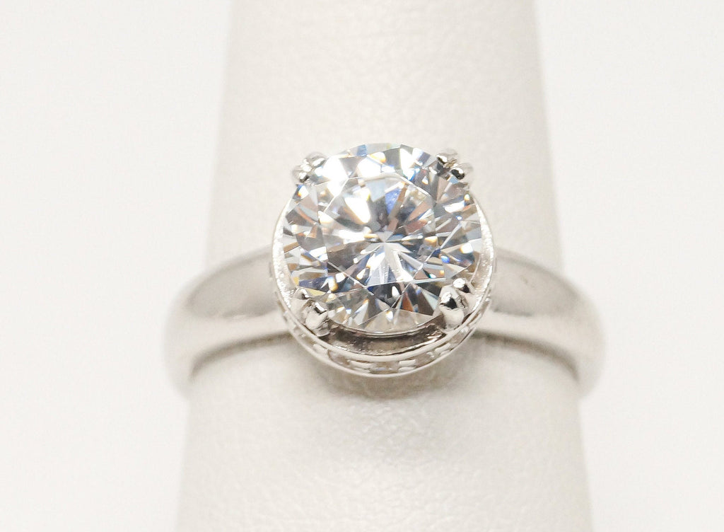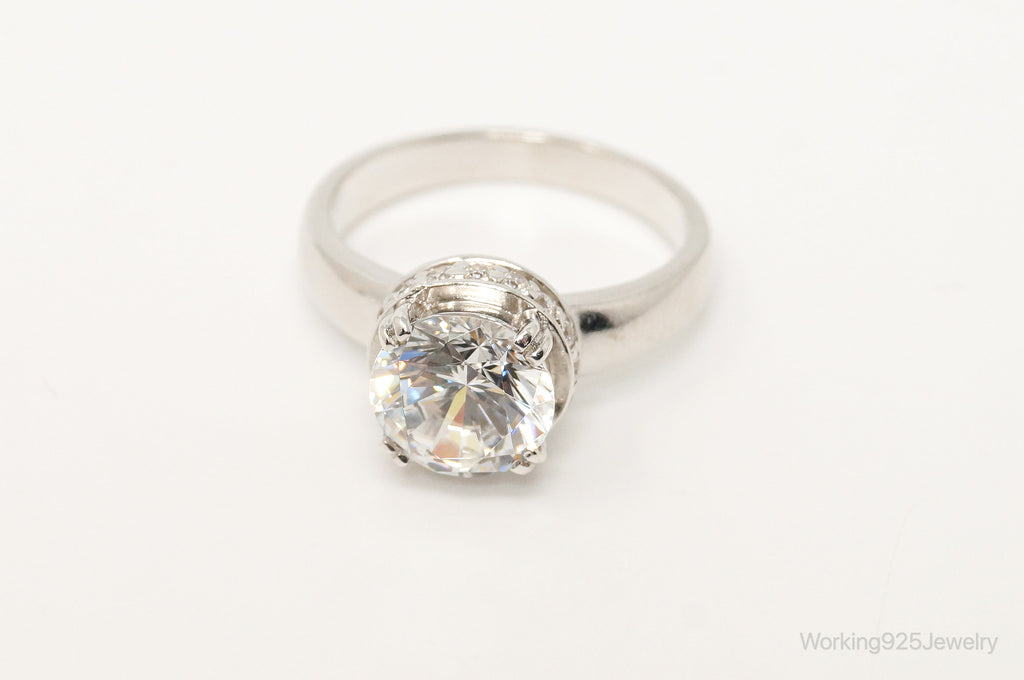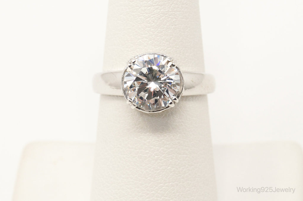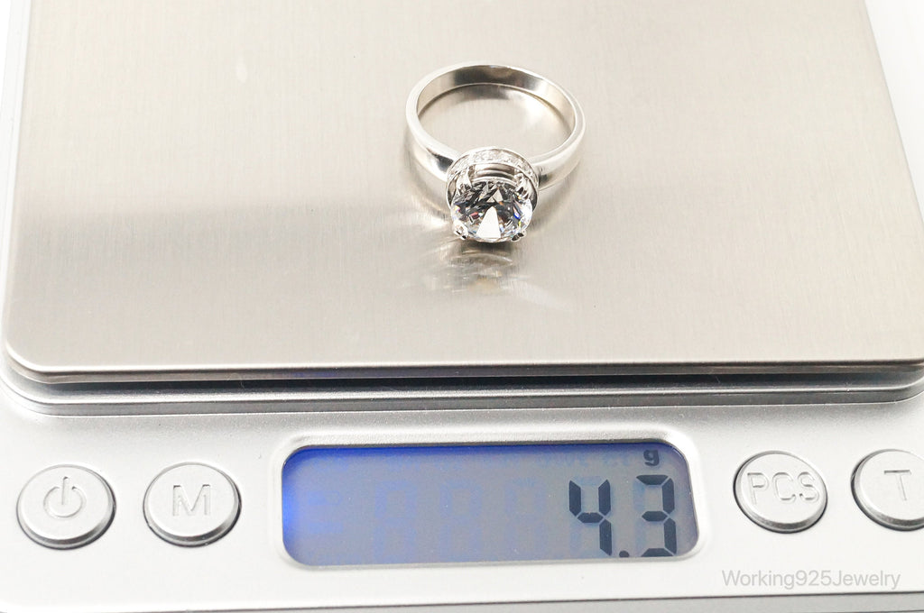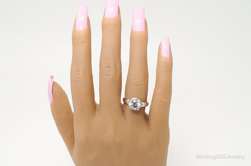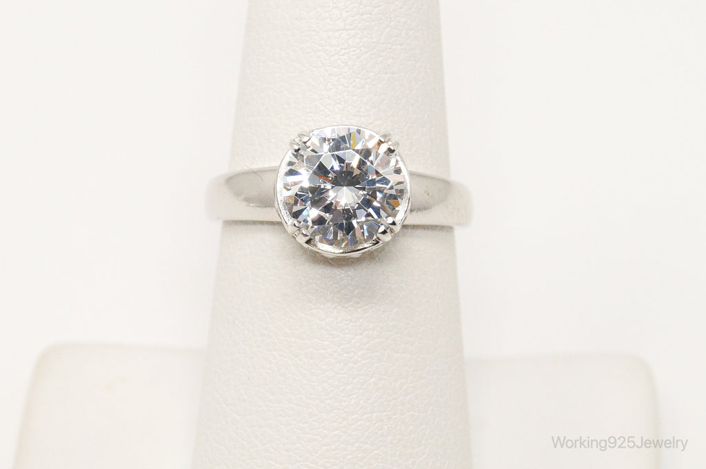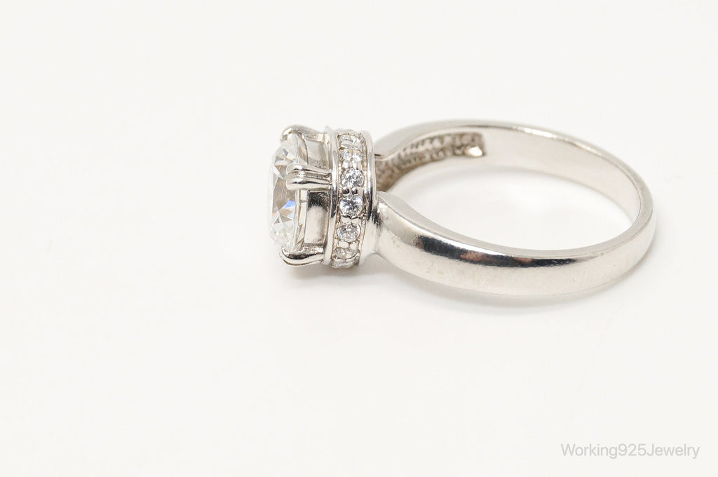 Vintage Designer Cubic Zirconia Sterling Silver Ring - Sz 7