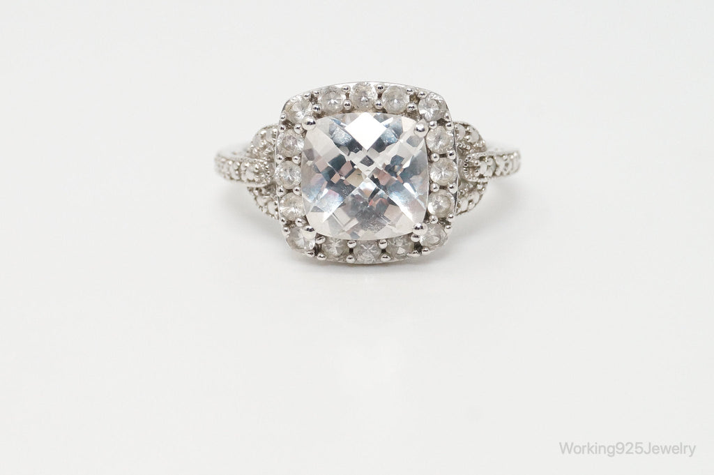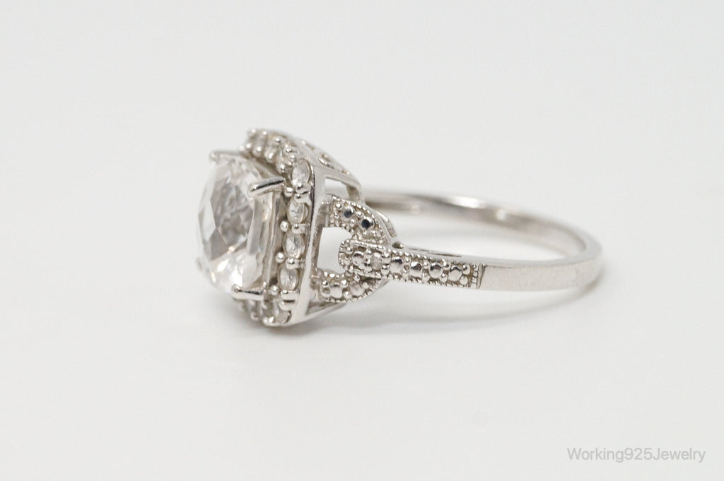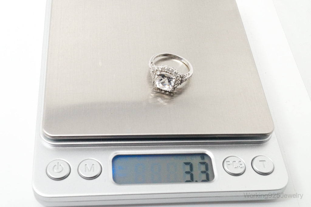 Vintage Designer Cubic Zirconia Sterling Silver Ring - Sz 7