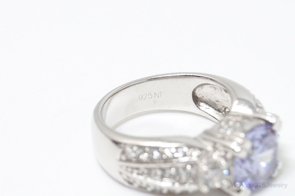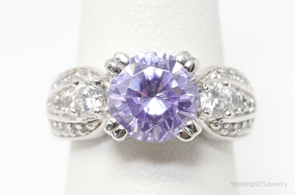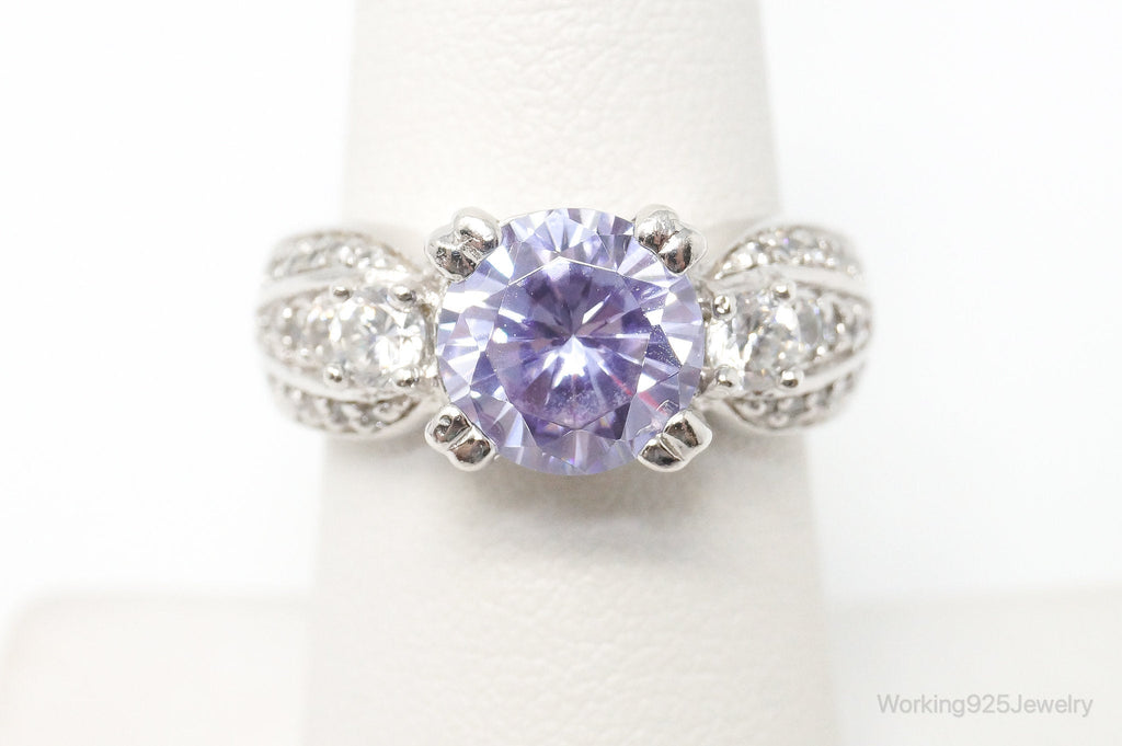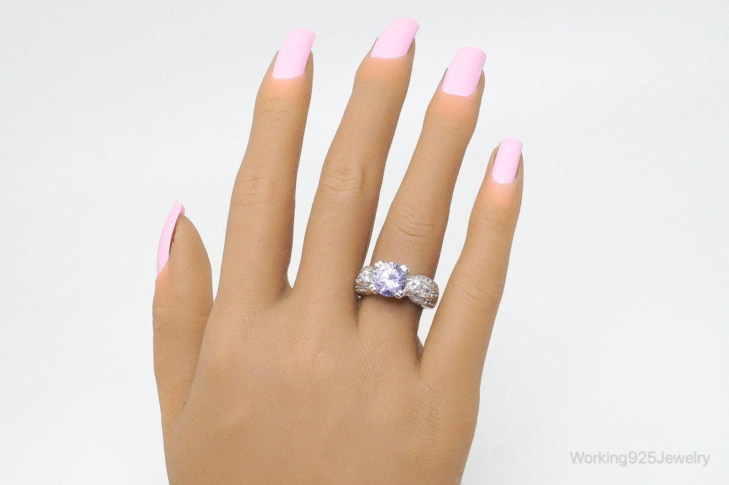Vintage Designer CWE Purple & White Cubic Zirconia Sterling Silver Ring SZ 7