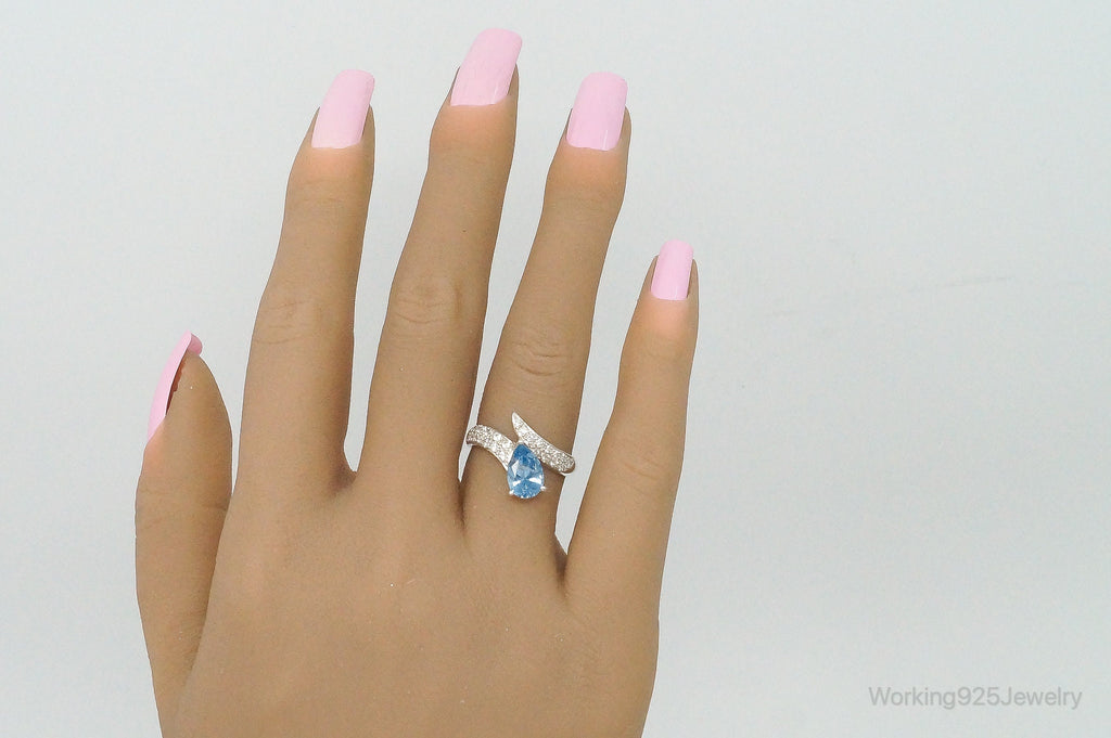 Vintage Designer DBJ Blue Topaz Cubic Zirconia Sterling Silver Ring Size 6.25