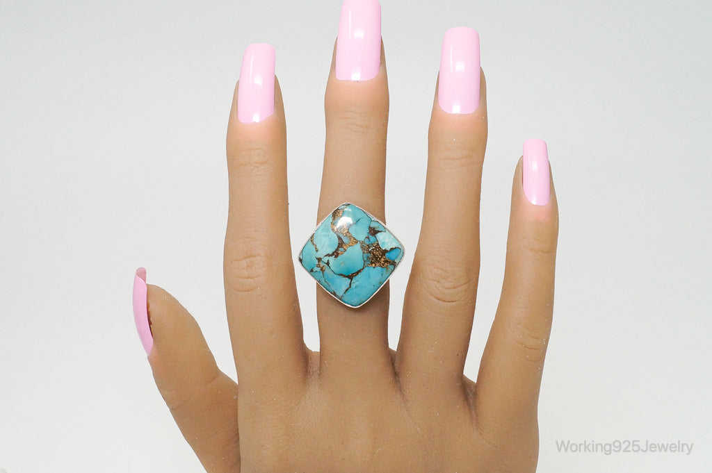Vintage Designer Desert Rose Trading DTR Turquoise Sterling Silver Ring - 6