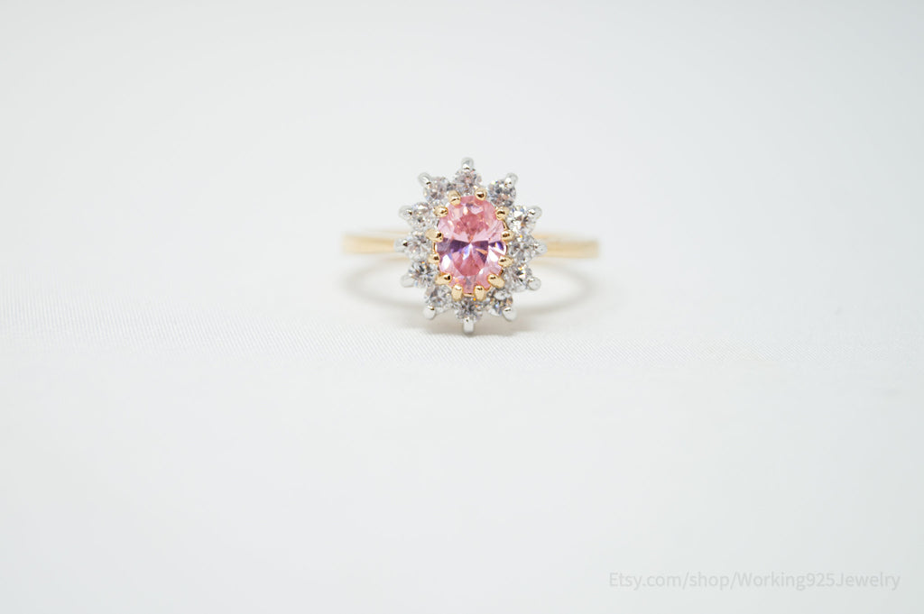 Vintage Designer EDCO Pink Topaz Gold Vermeil CZ Ring Sterling Silver - Sz 6.75