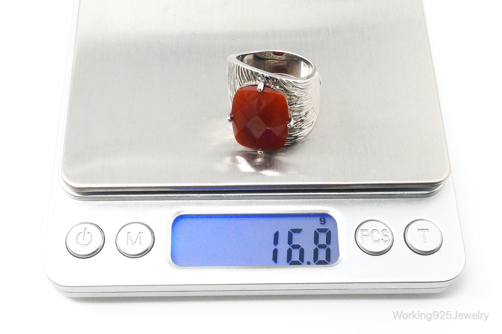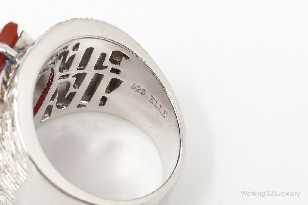 Vintage Designer Elle Carnelian Ruby Sterling Silver Statement Ring Size 9