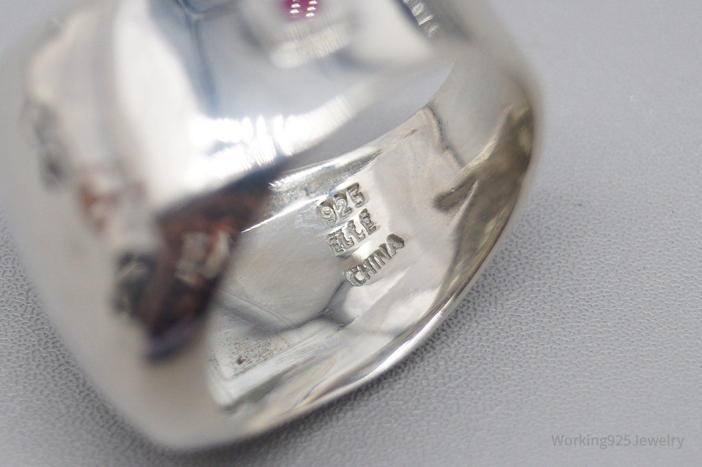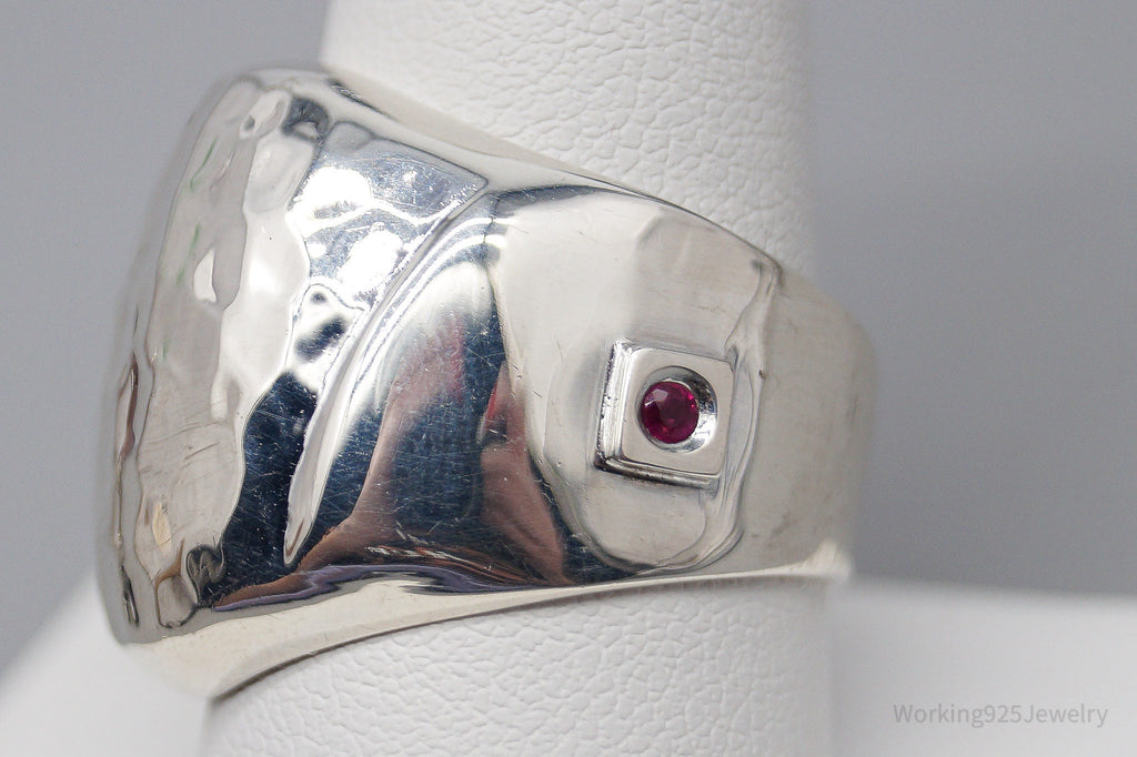 Vintage Designer Elle Sterling Silver & Ruby Band Ring - Size 10