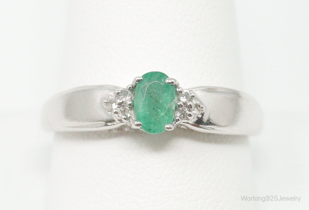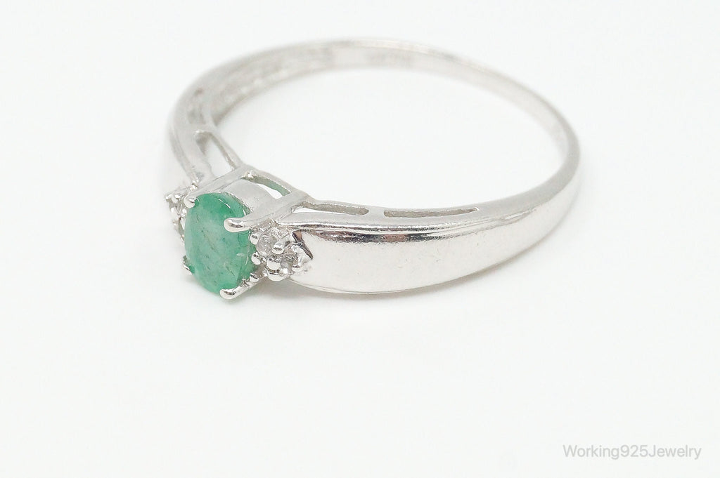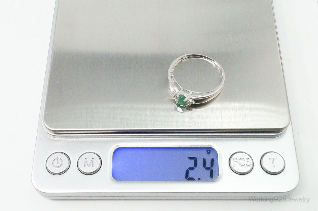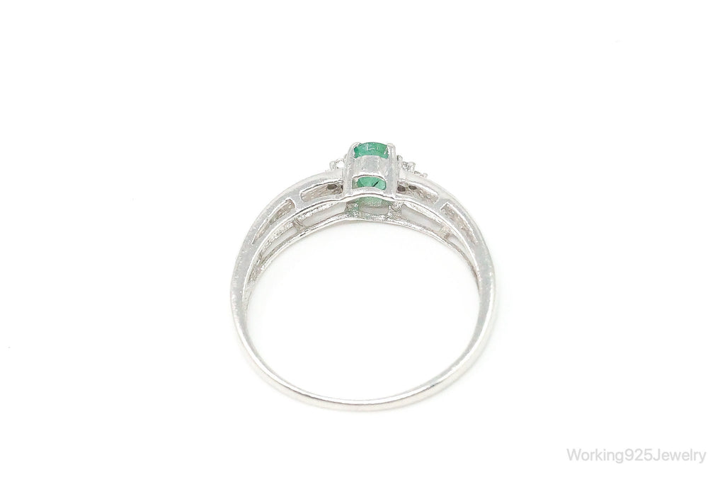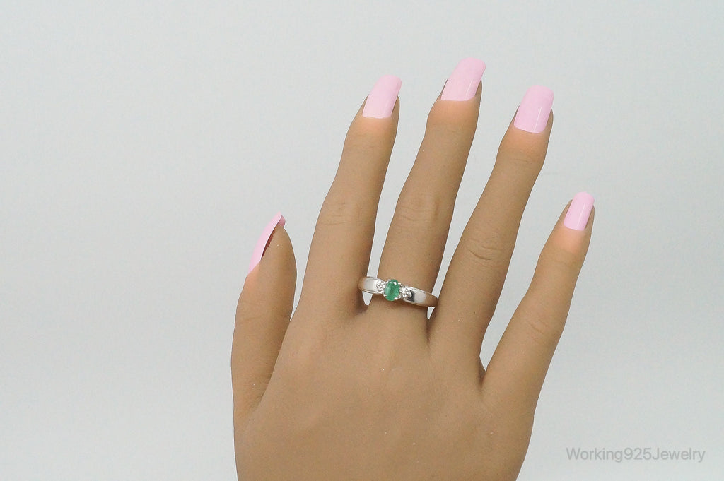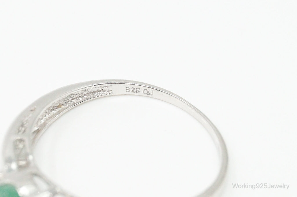 Vintage Designer Emerald Cubic Zirconia Sterling Silver Ring Size 11
