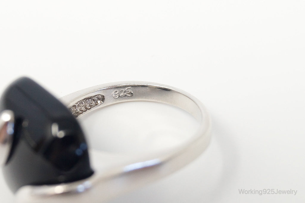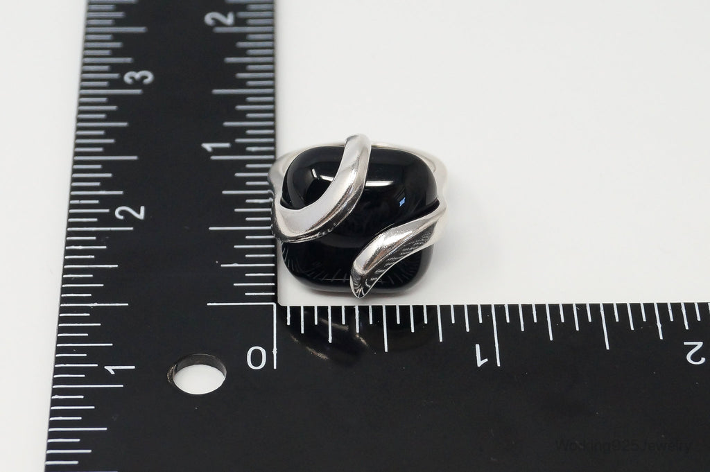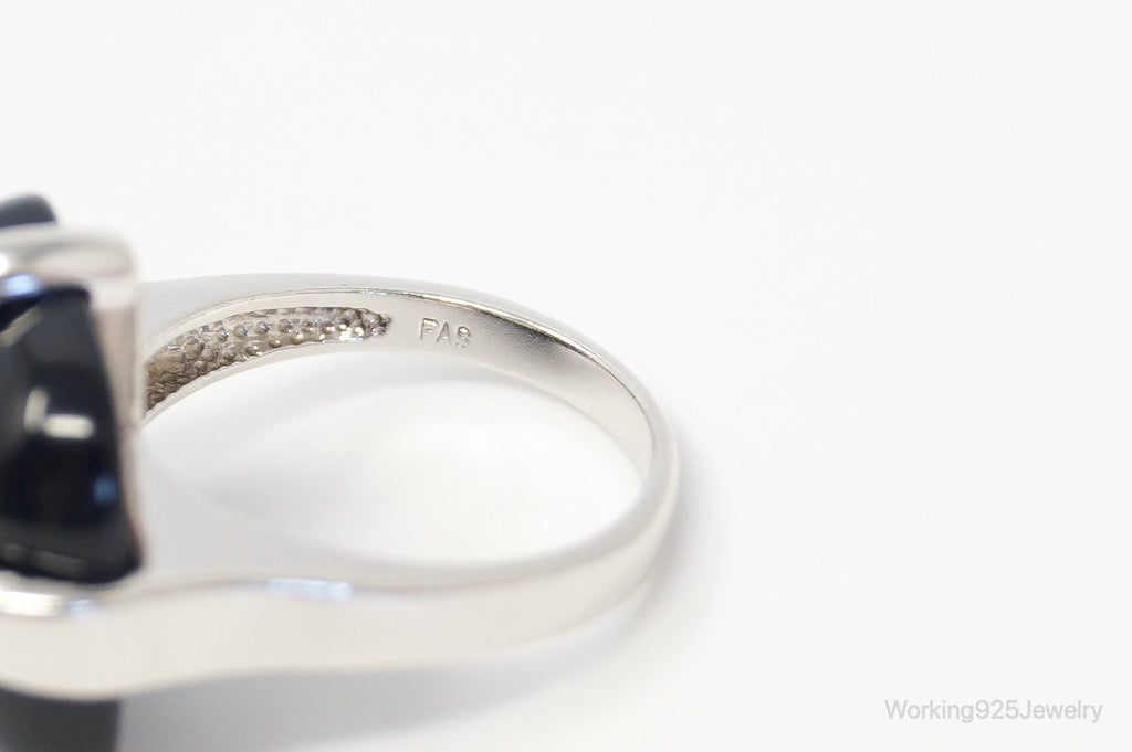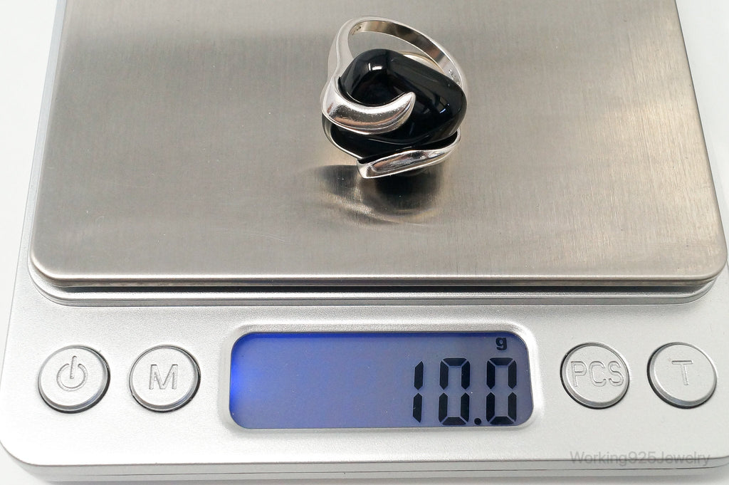 Vintage Designer FAS Black Onyx Sterling Silver Ring - Size 8.25