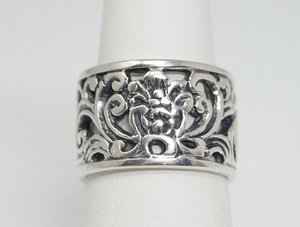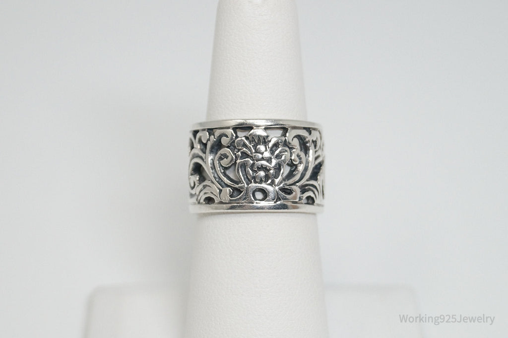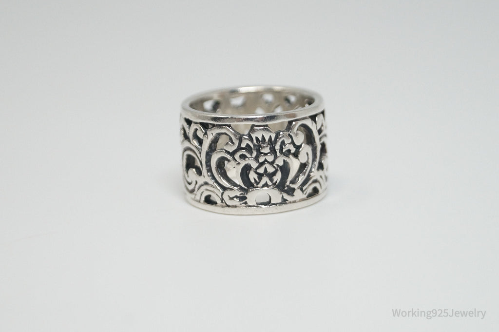 Vintage Designer Floral Motif Cut Out Design Sterling Silver Band Ring - Sz 6.25