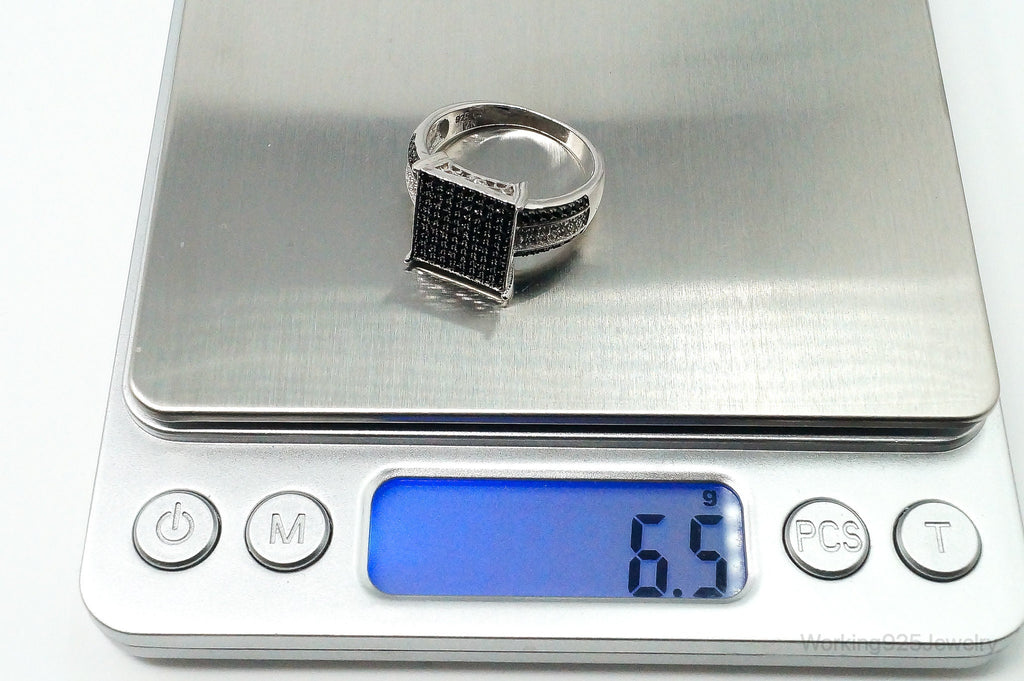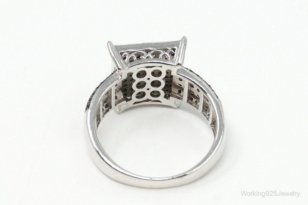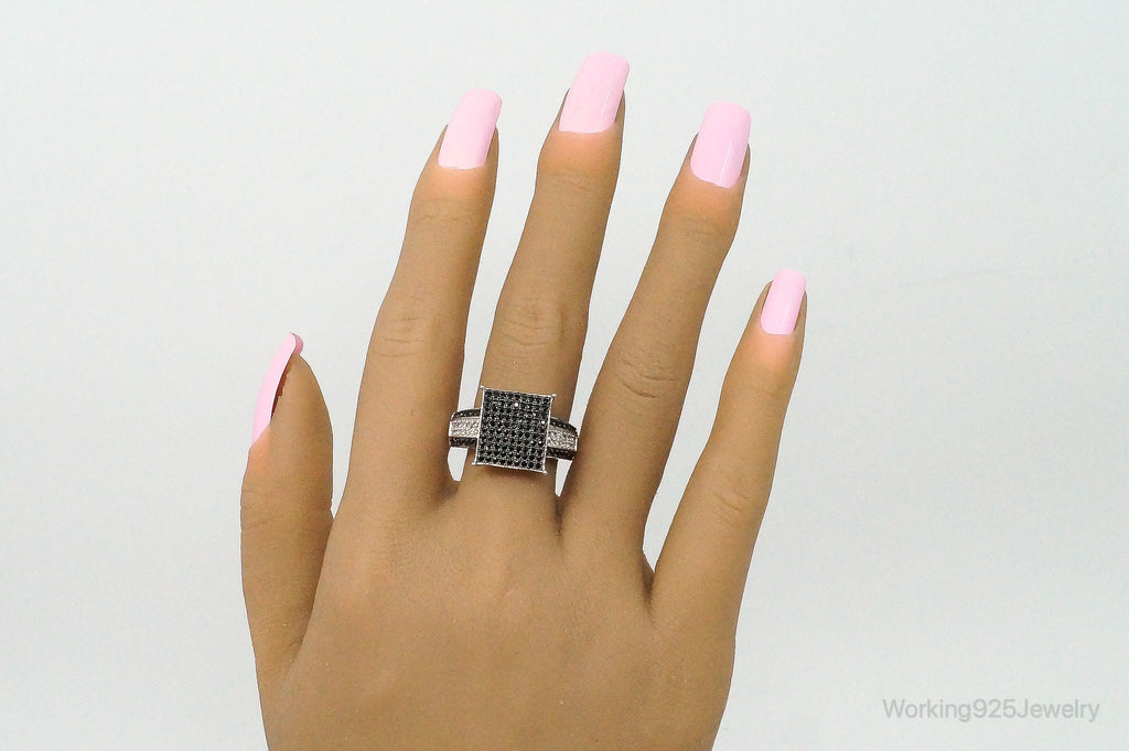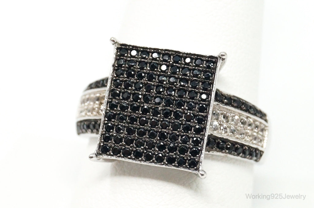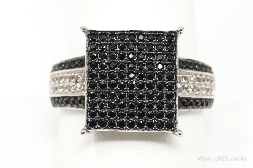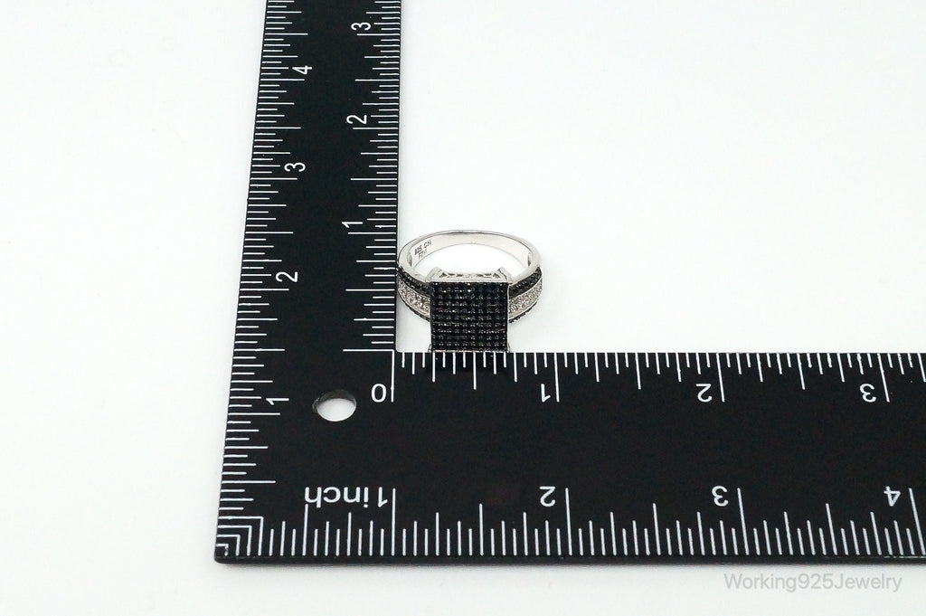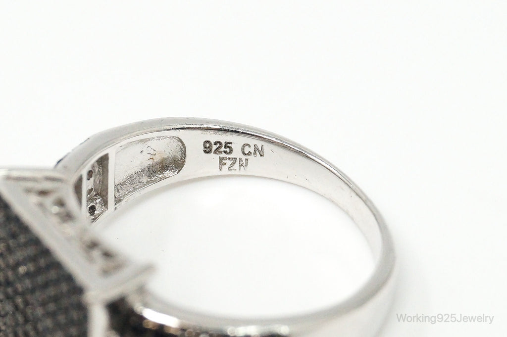 Vintage Designer FZN Cubic Zirconia Black Onyx Sterling Silver Ring - Size 10
