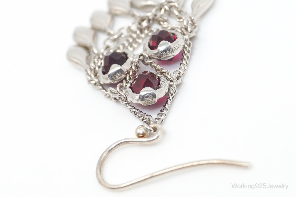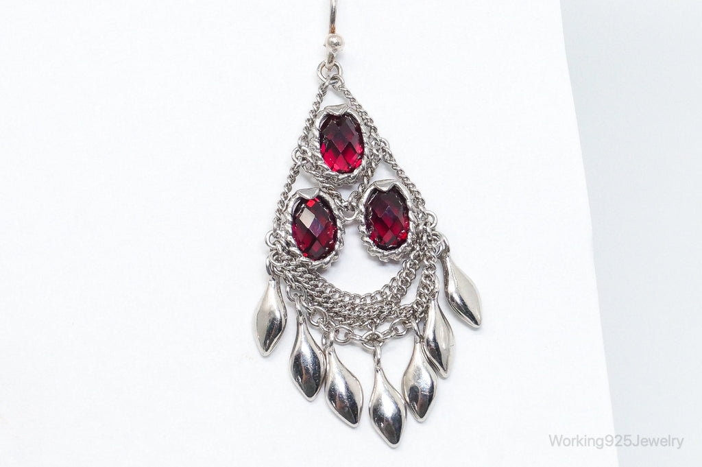 Vintage Designer Garnet Chandelier Sterling Silver Earrings