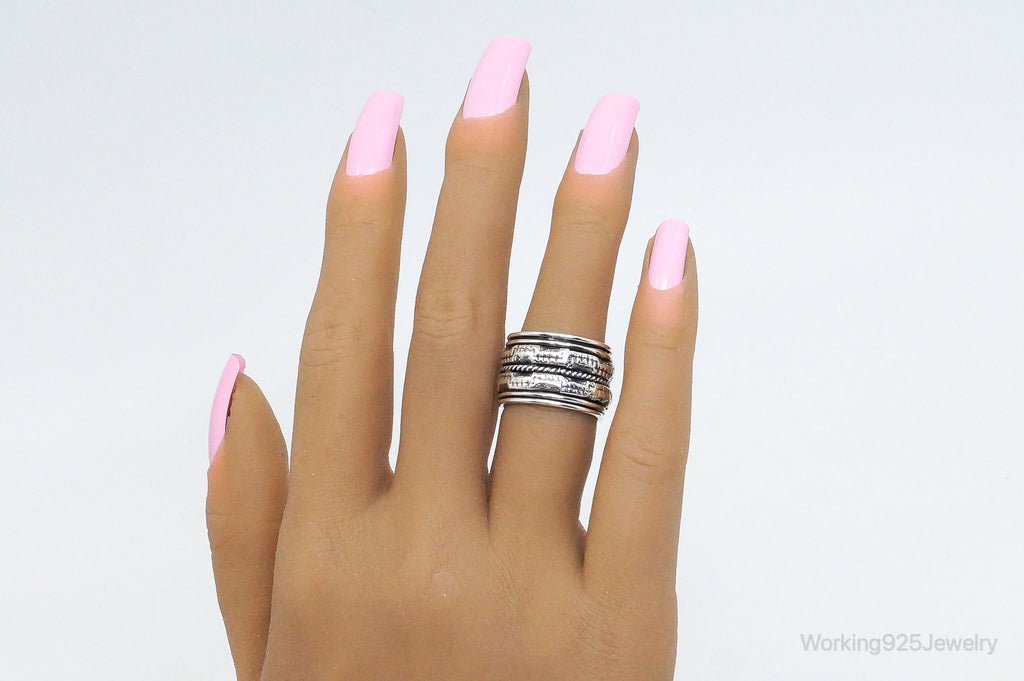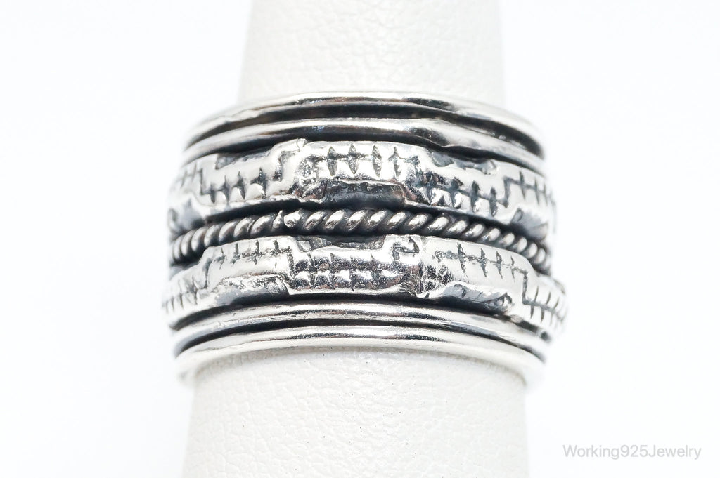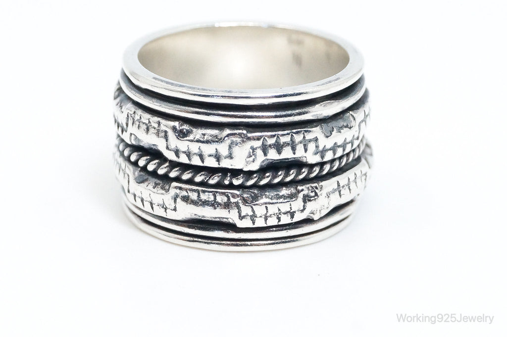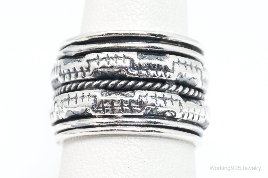 Vintage Designer GeoArt Sterling Silver Spinner Band Ring Size 7