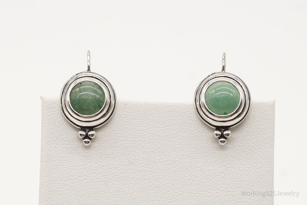 Vintage Designer Green Aventurine Sterling Silver Earrings