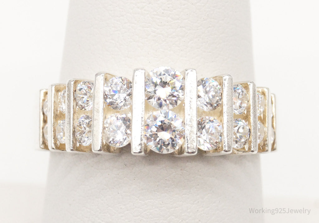 Vintage Designer GV Cubic Zirconia Sterling Silver Ring - Size 7.75