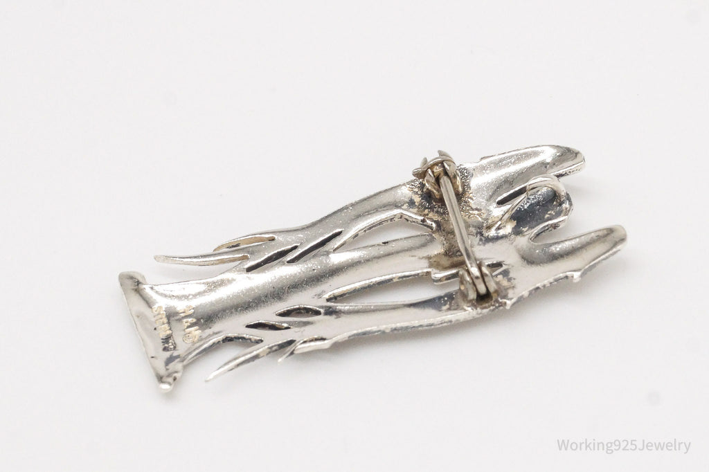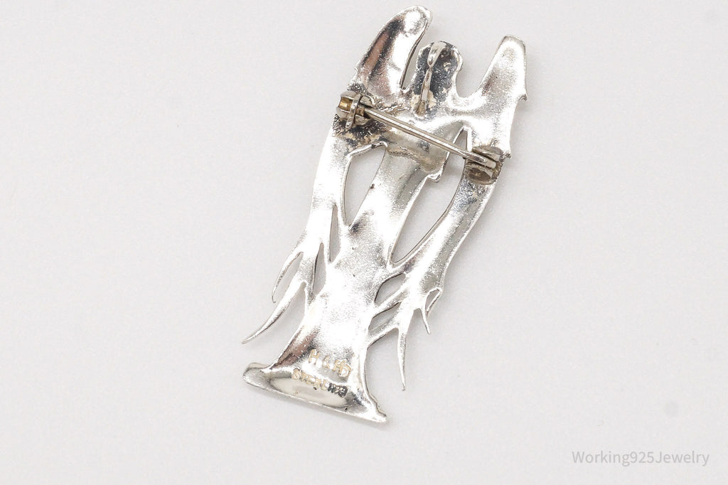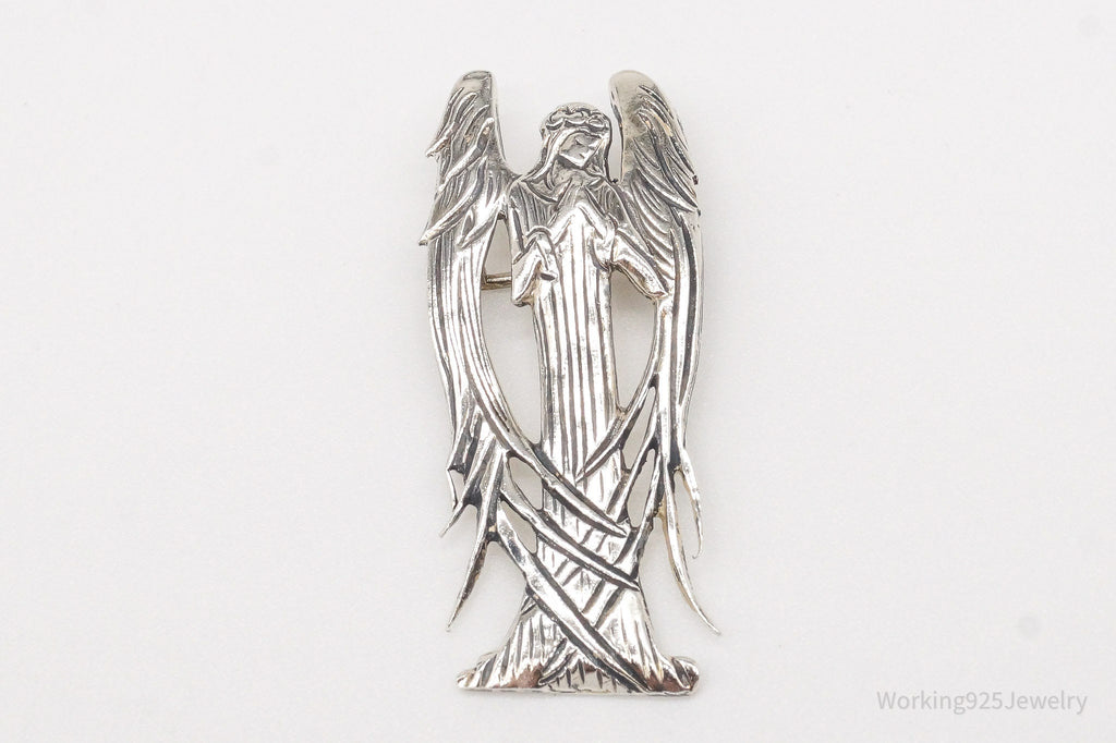 Vintage Designer H&H Angel Praying Sterling Silver Brooch Pin Pendant