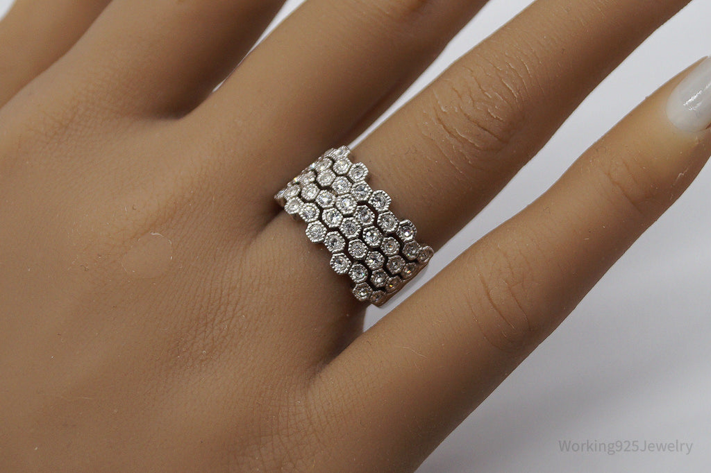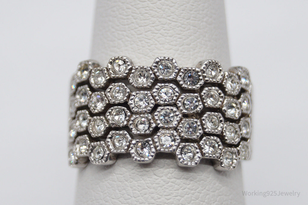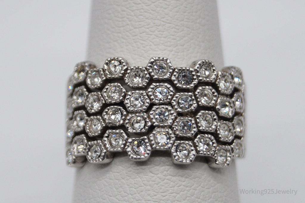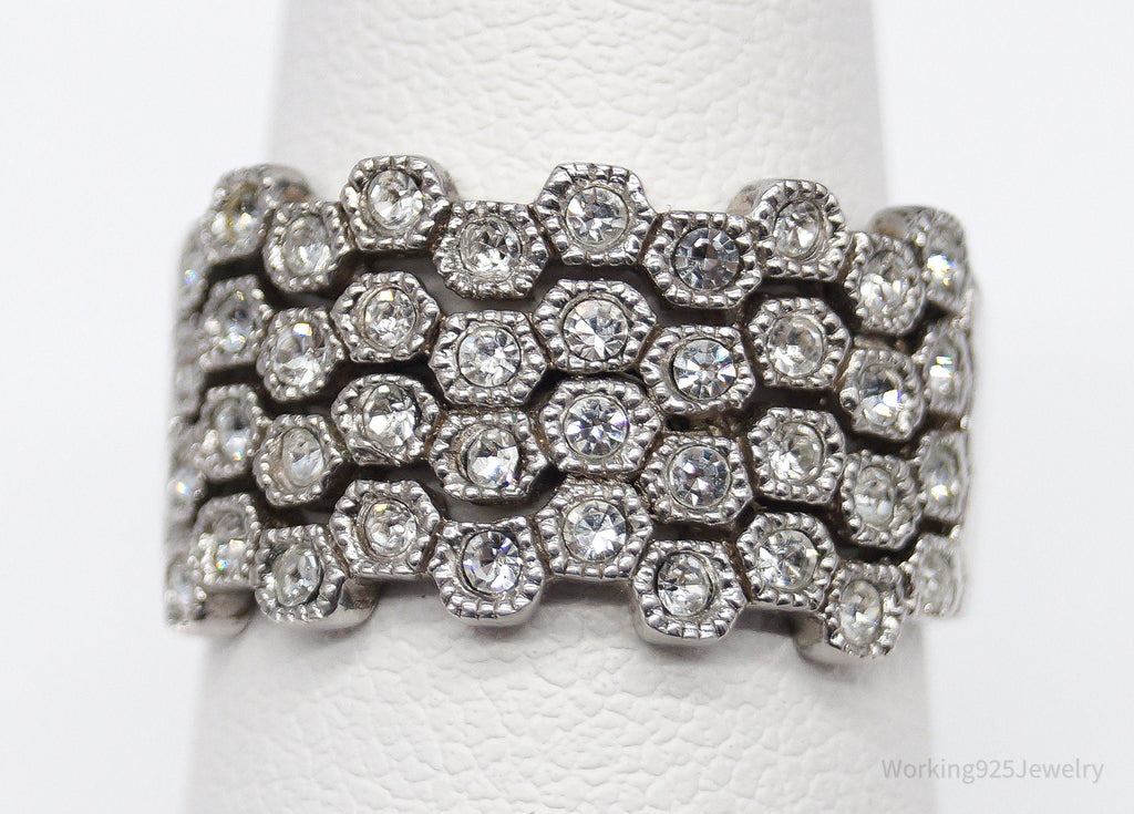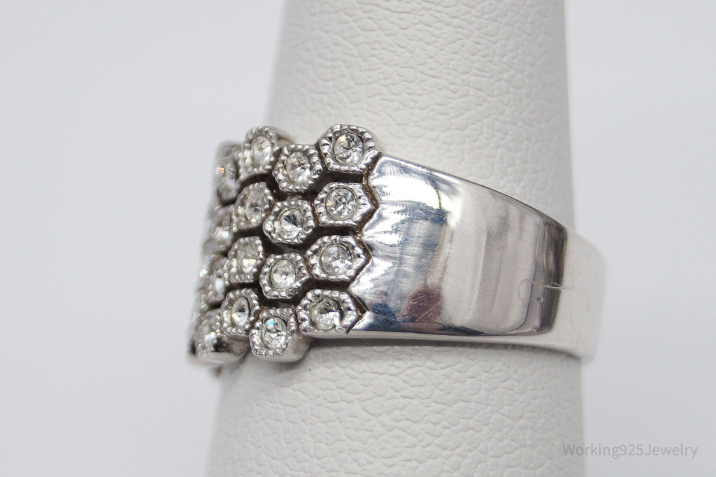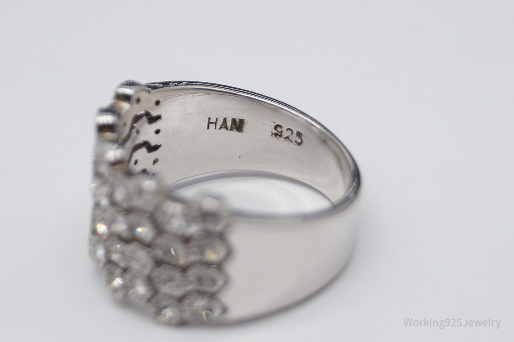 Vintage Designer HAN Clear Stone Sterling Silver Ring - Size 7