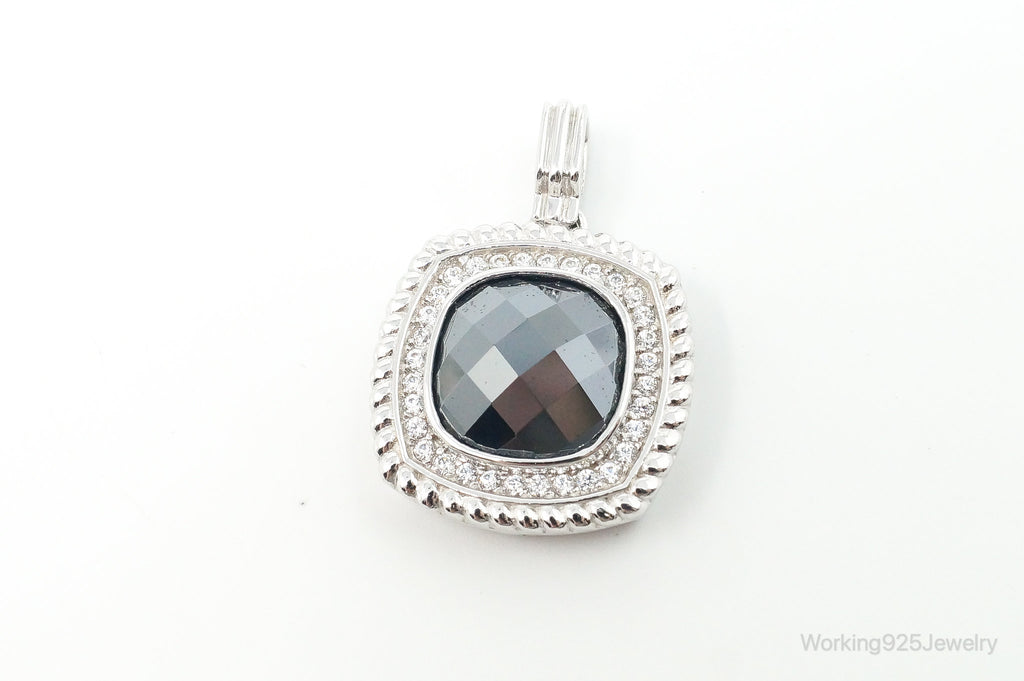 Vintage Designer Hematite Cubic Zirconia Sterling Silver Pendant