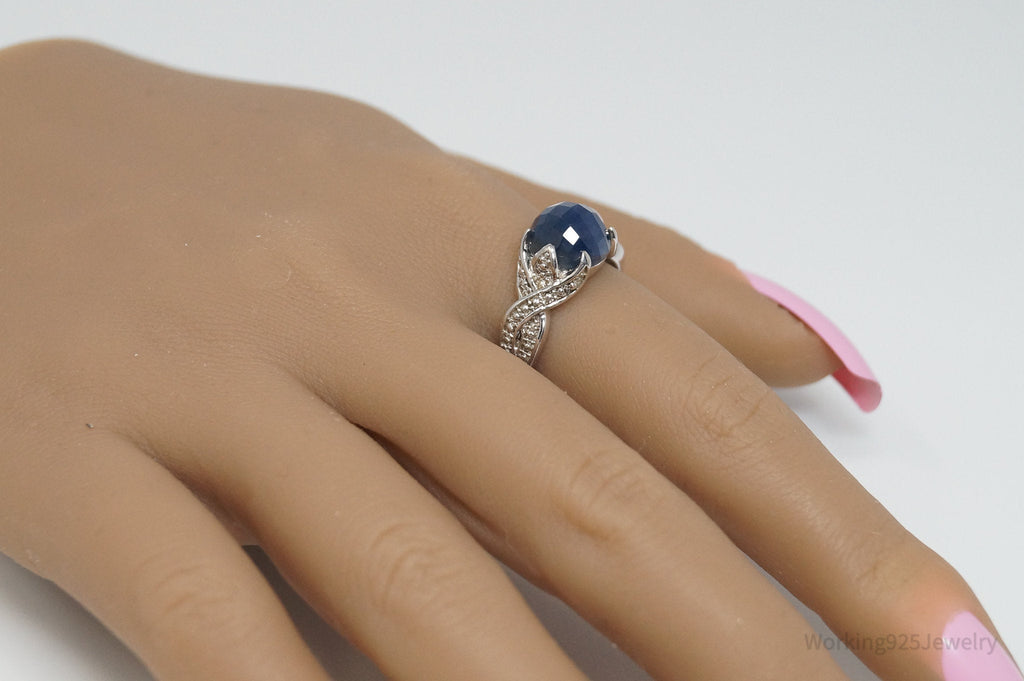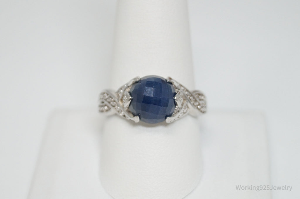 Vintage Designer HT Blue Sapphire Sterling Silver Ring - Sz 9.75
