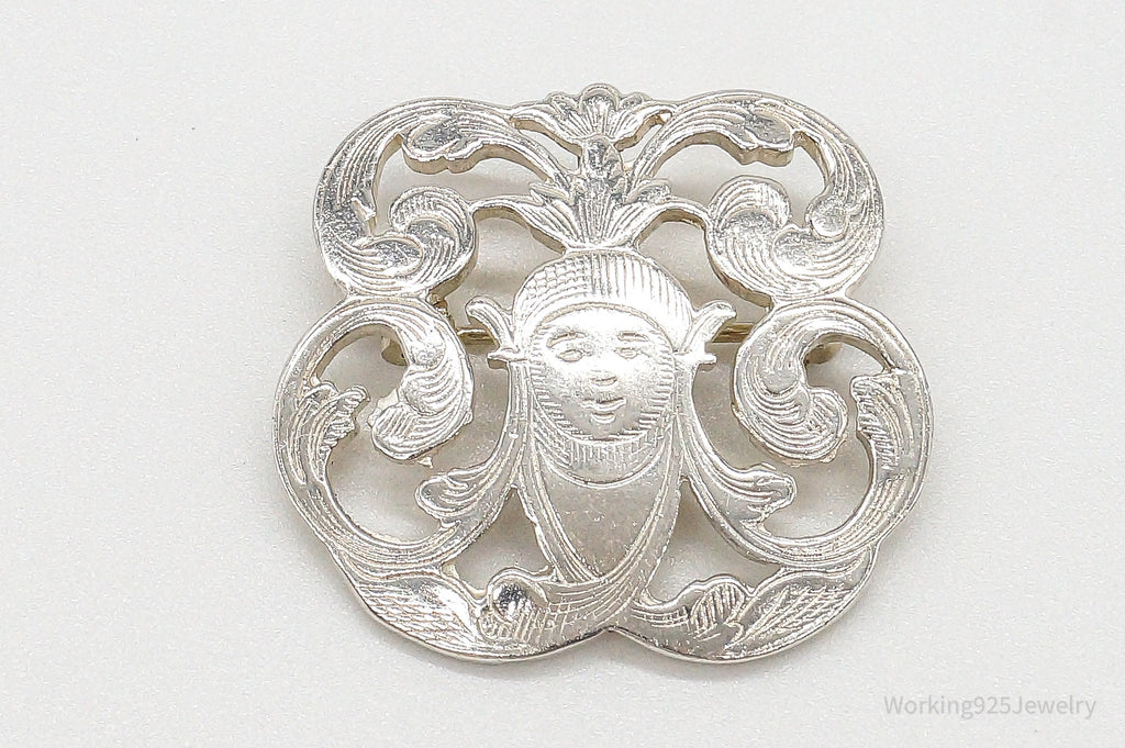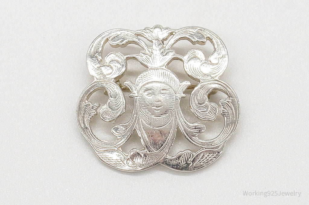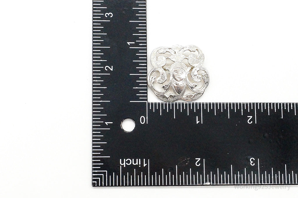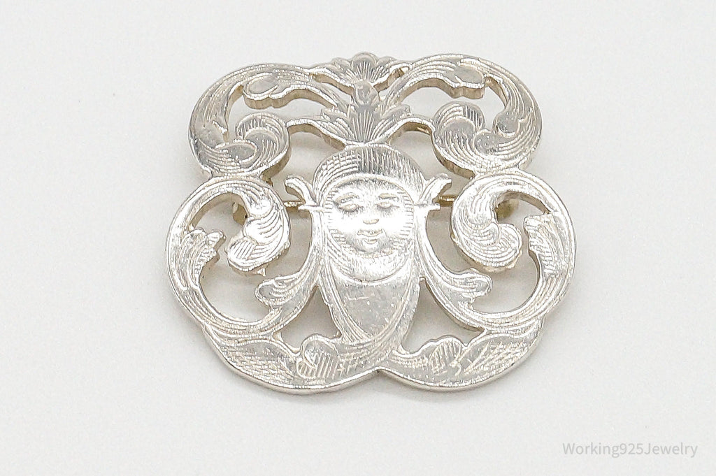 Vintage Designer IC Goddess Etched Sterling Silver Brooch/Pendant