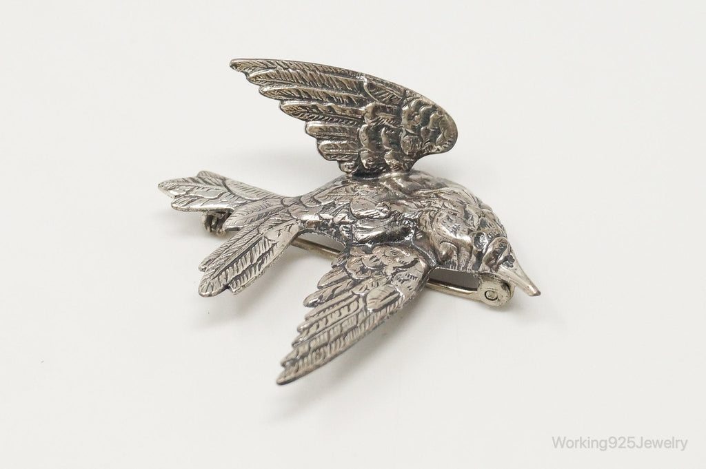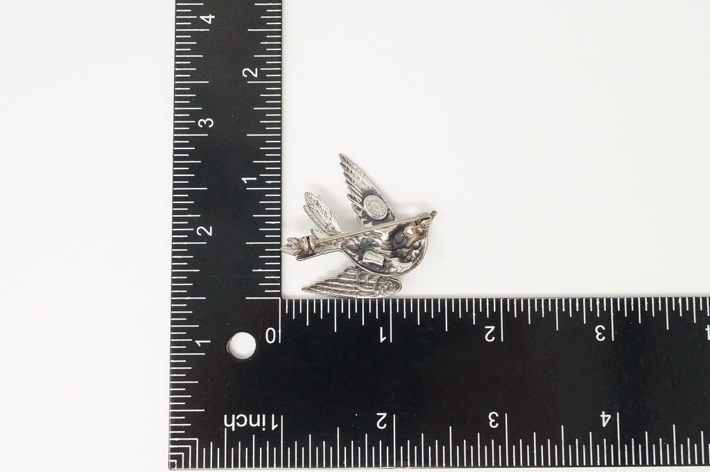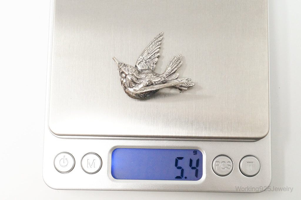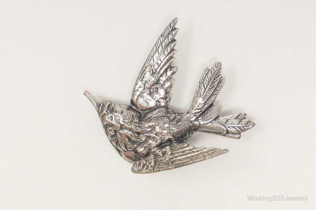 Vintage Designer JewelArt Humming Bird Sterling Silver Brooch Pin
