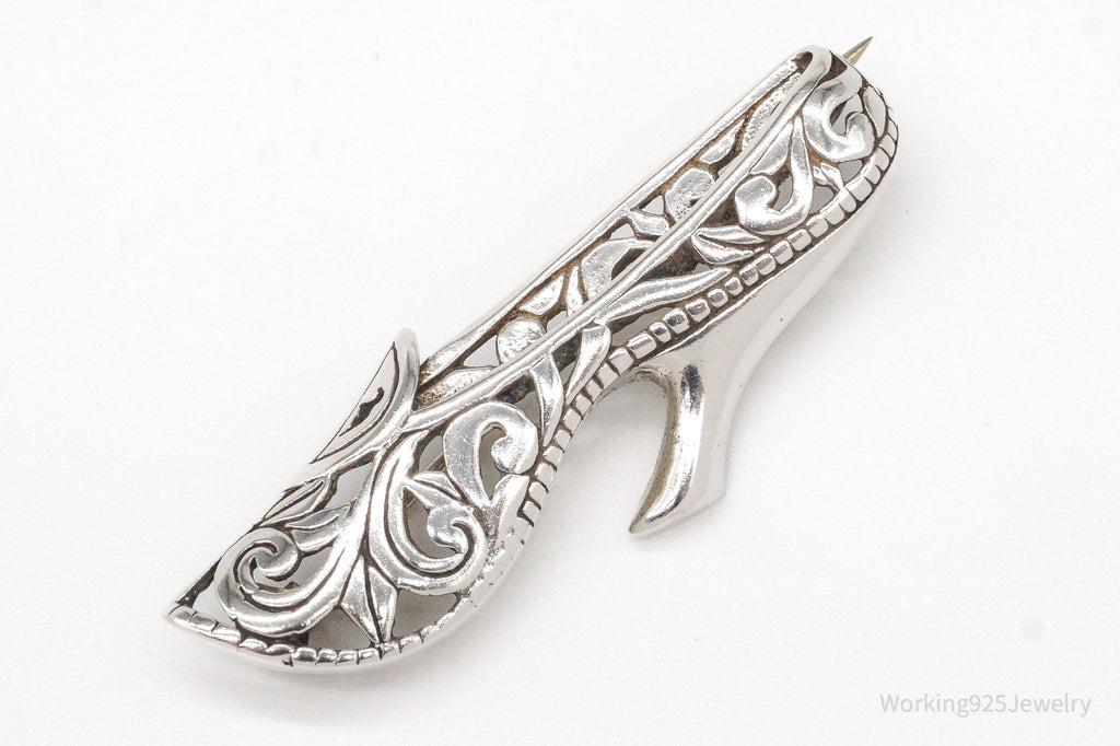 Vintage Designer Jezlaine Lady's High Heel Sterling Silver Brooch Pin