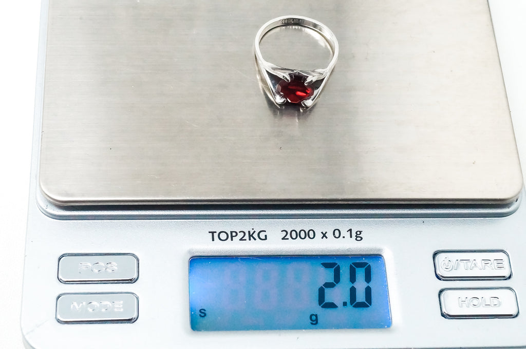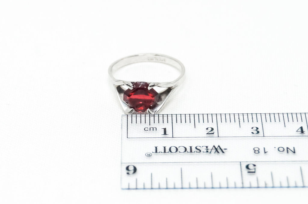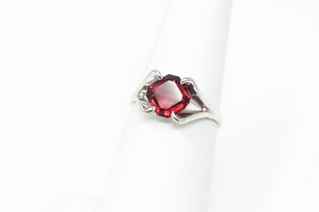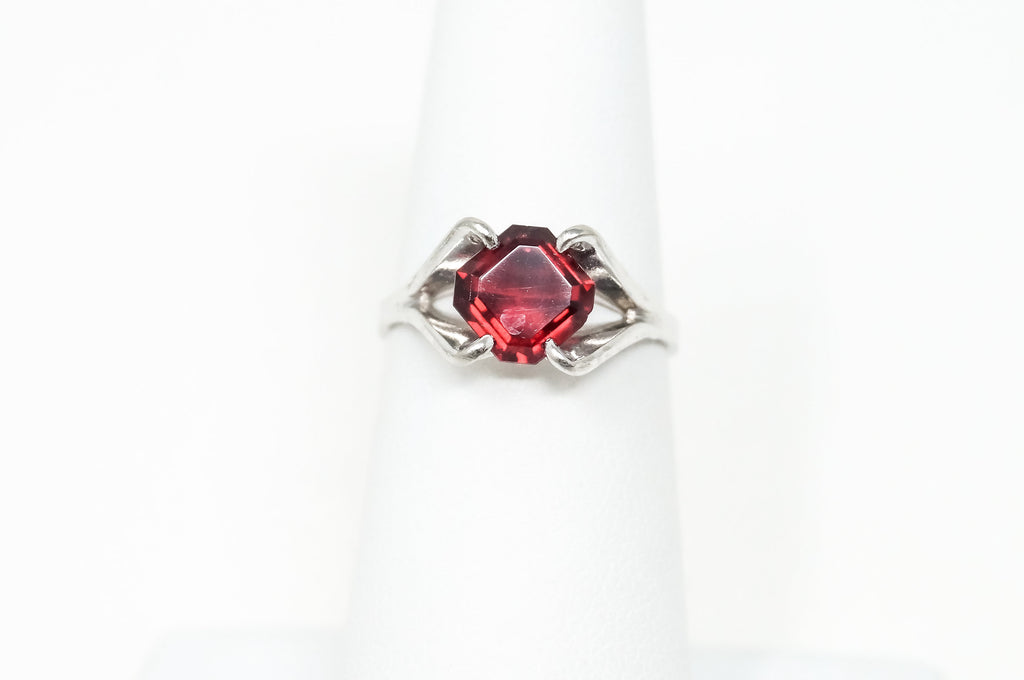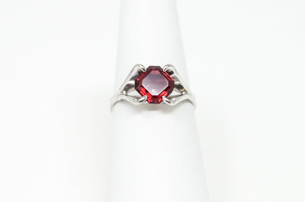 Vintage Designer Joseph Esposito Espo Red Glass Sterling Silver Ring Size 5.75