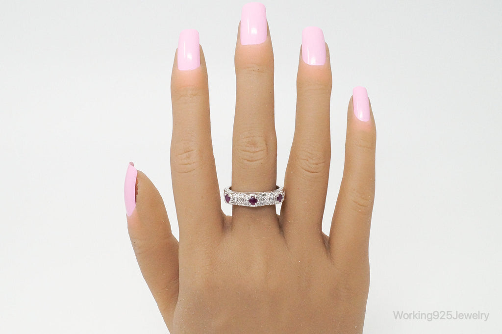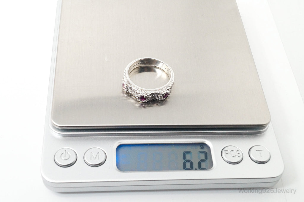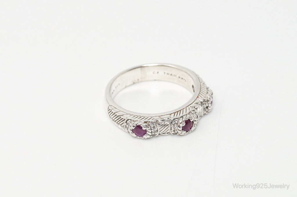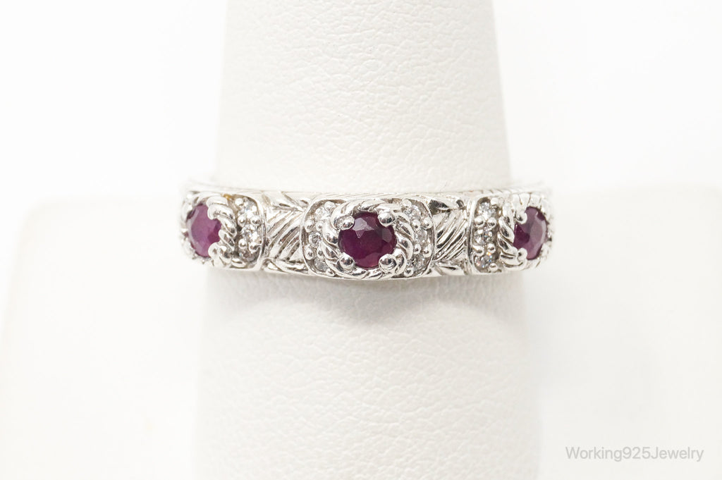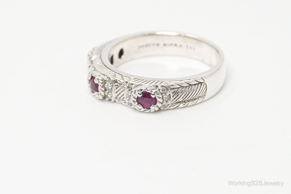 Vintage Designer Judith Ripka Ruby CZ Cable Sterling Silver Ring - Size 10