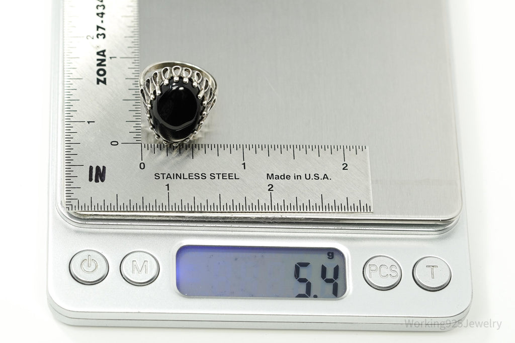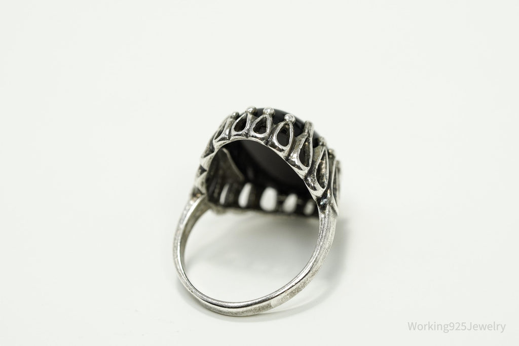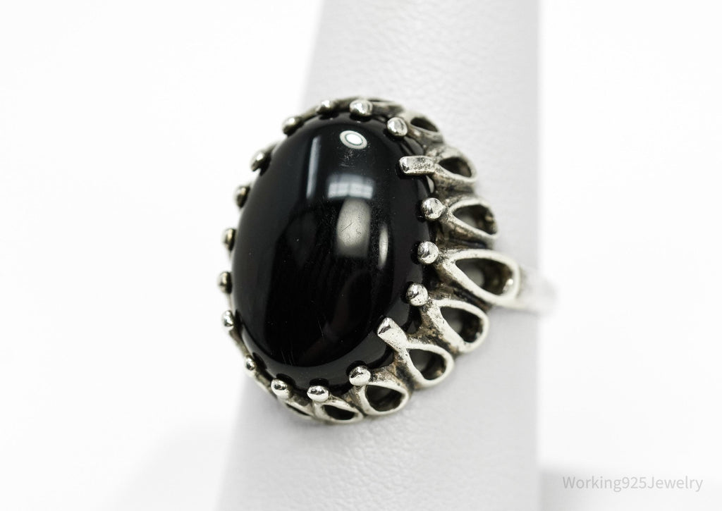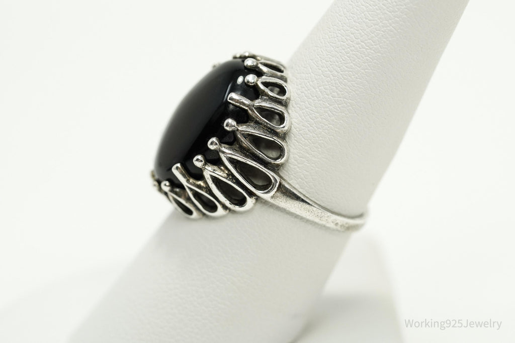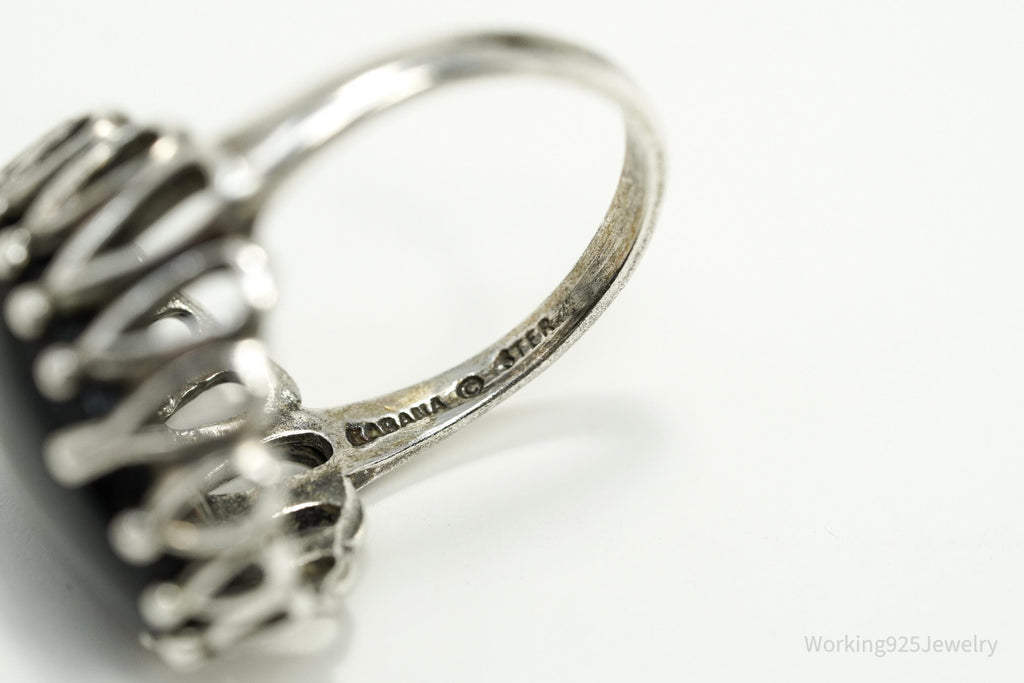 Vintage Designer Kabana Black Onyx Sterling Silver Ring - Size 7.5