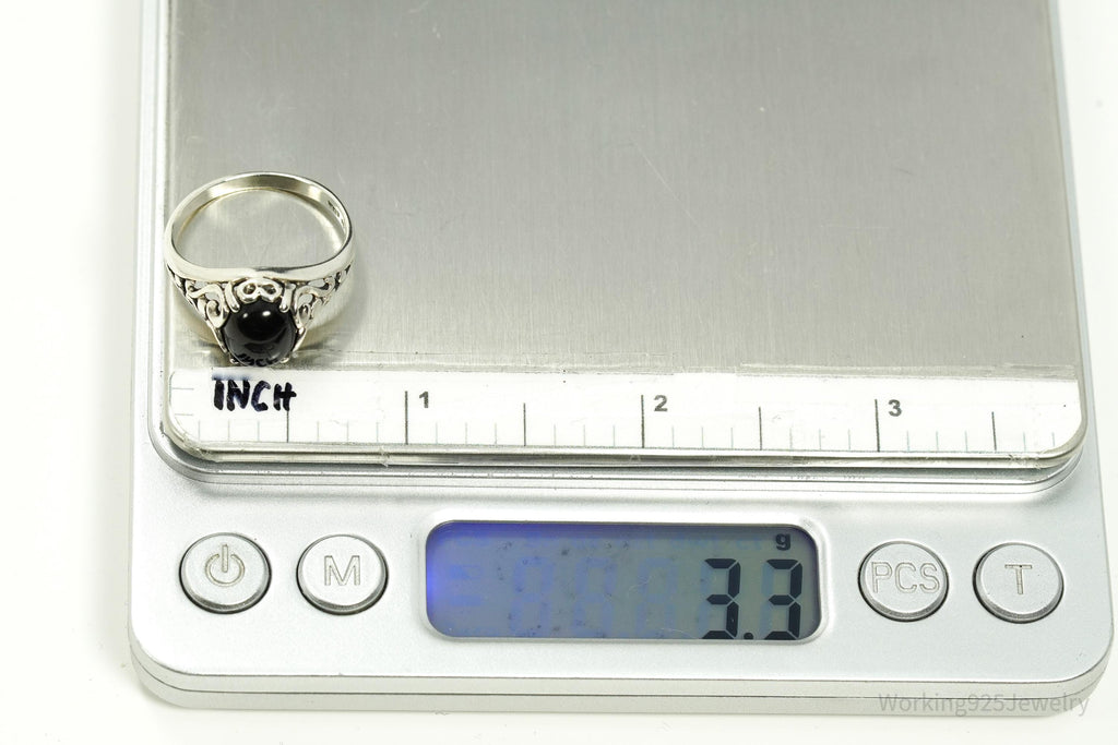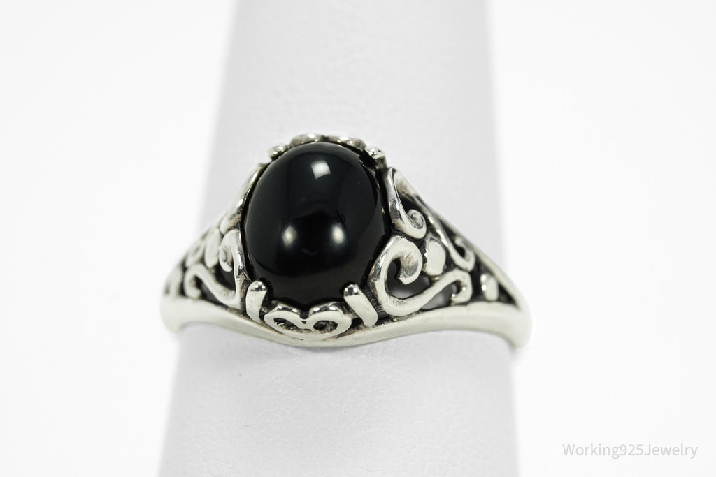 Vintage Designer Kabana Black Onyx Sterling Silver Ring - Size 8.25
