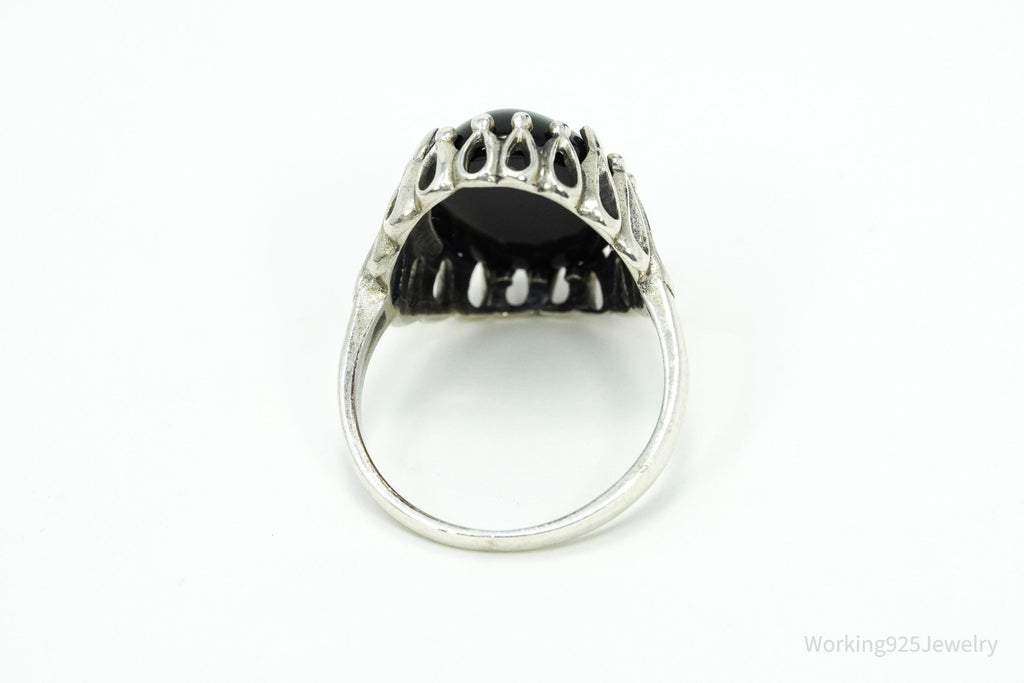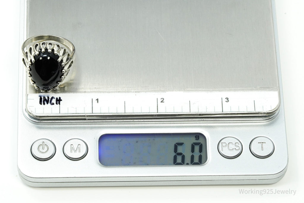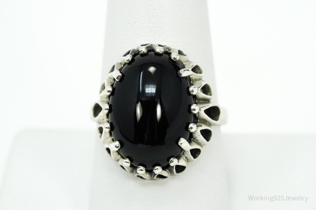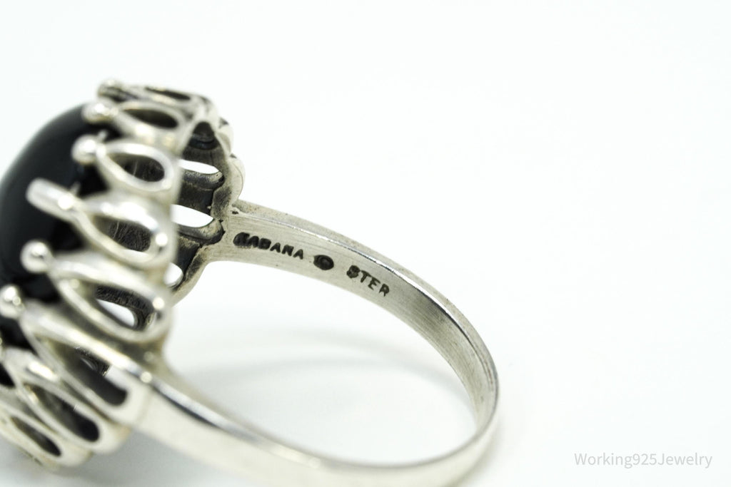 Vintage Designer Kabana Black Onyx Sterling Silver Ring - Size 9.25
