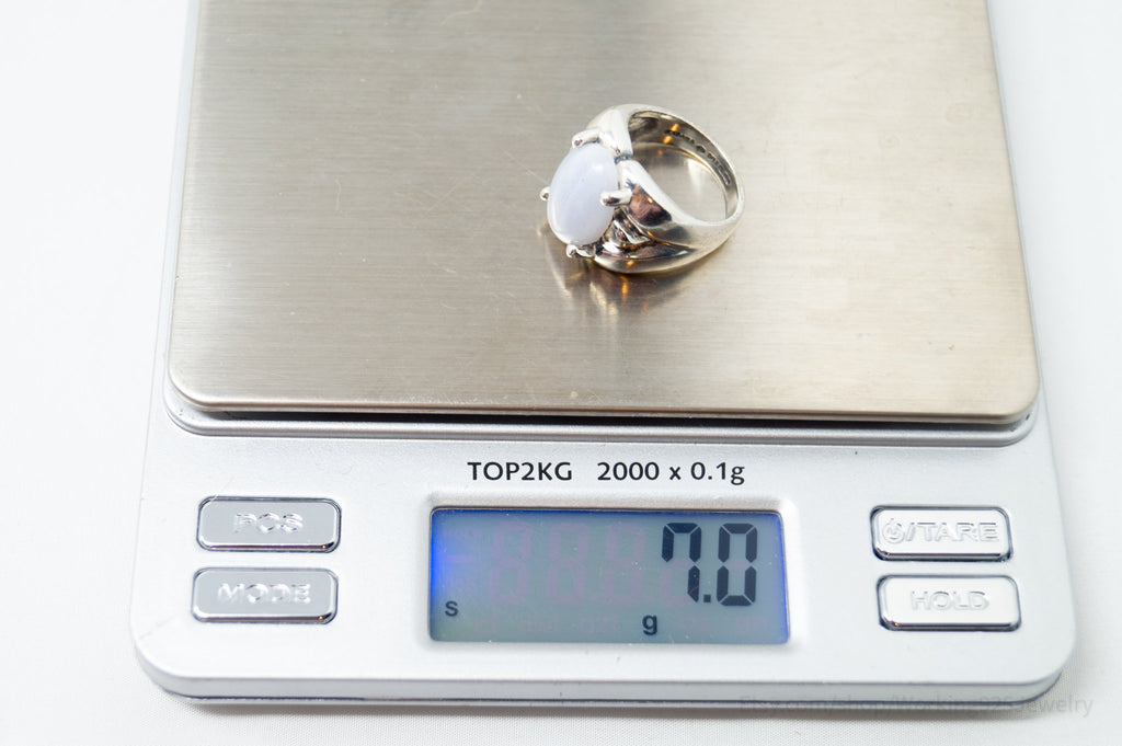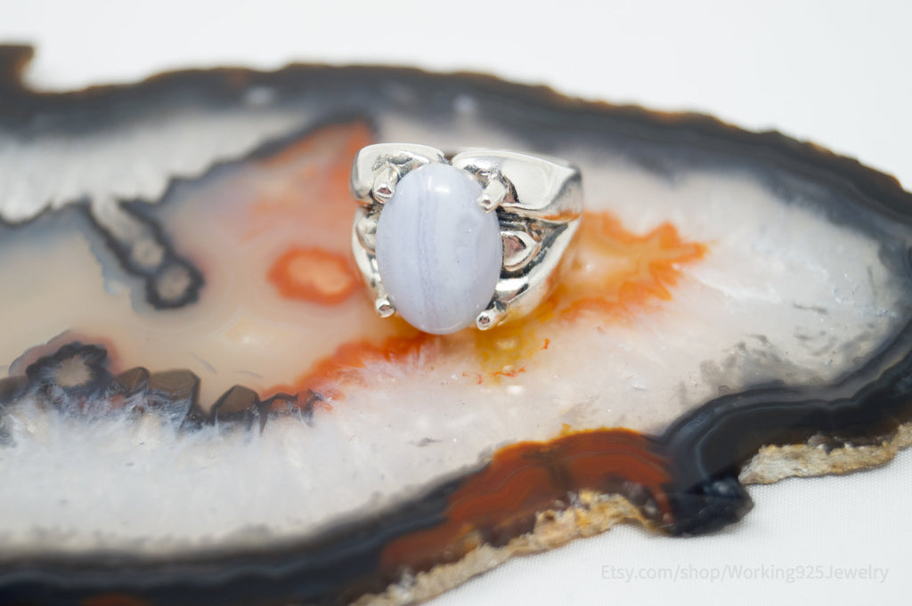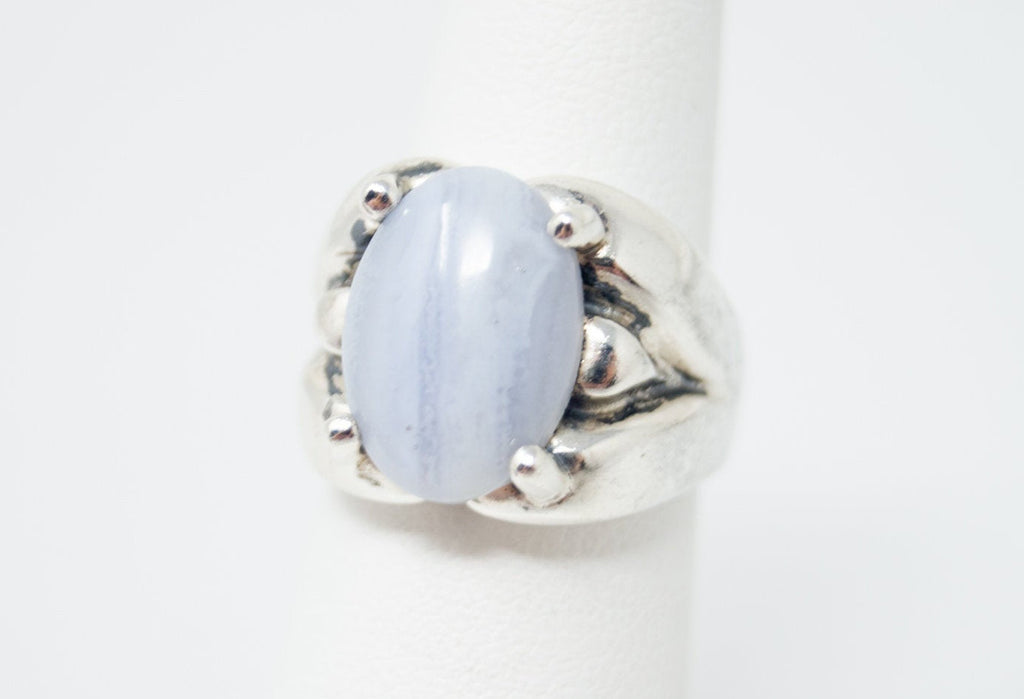 Vintage Designer Kabana Blue Lace Agate Western Sterling Silver Ring - Size 5