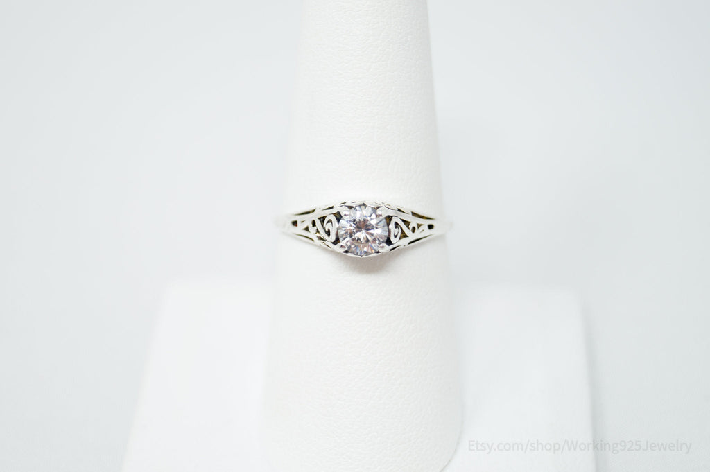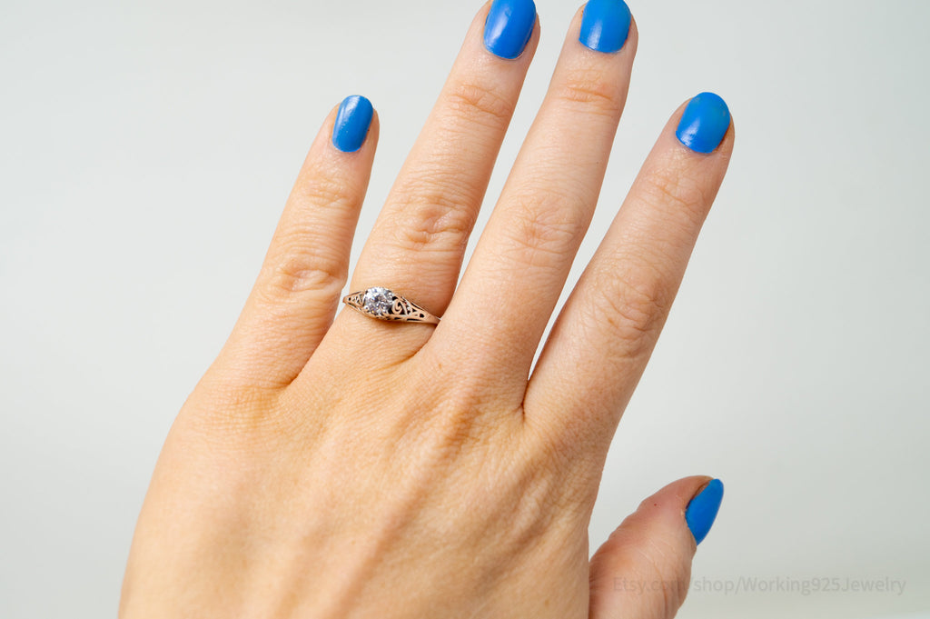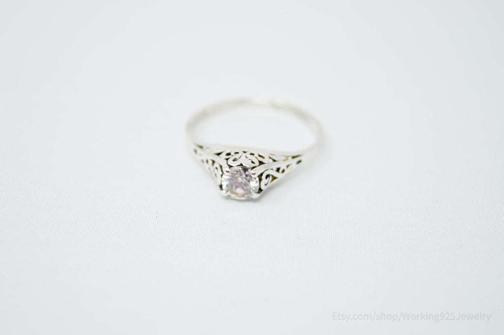 Vintage Designer KABANA CZ Filigree Scroll Swirl Sterling Silver Ring - Size 7.5