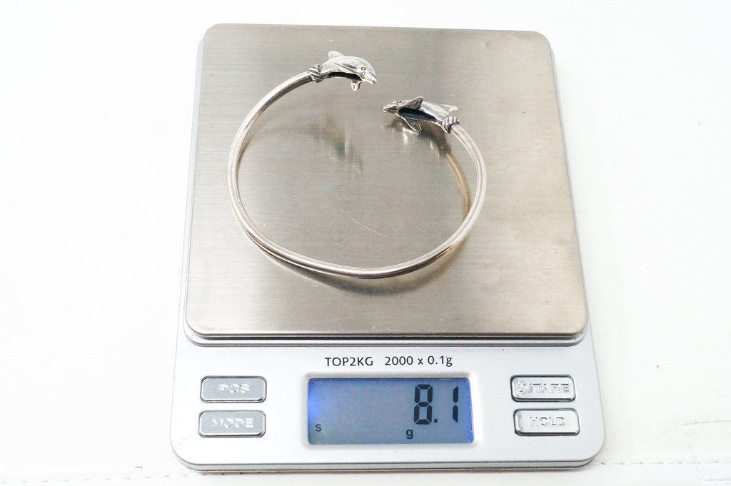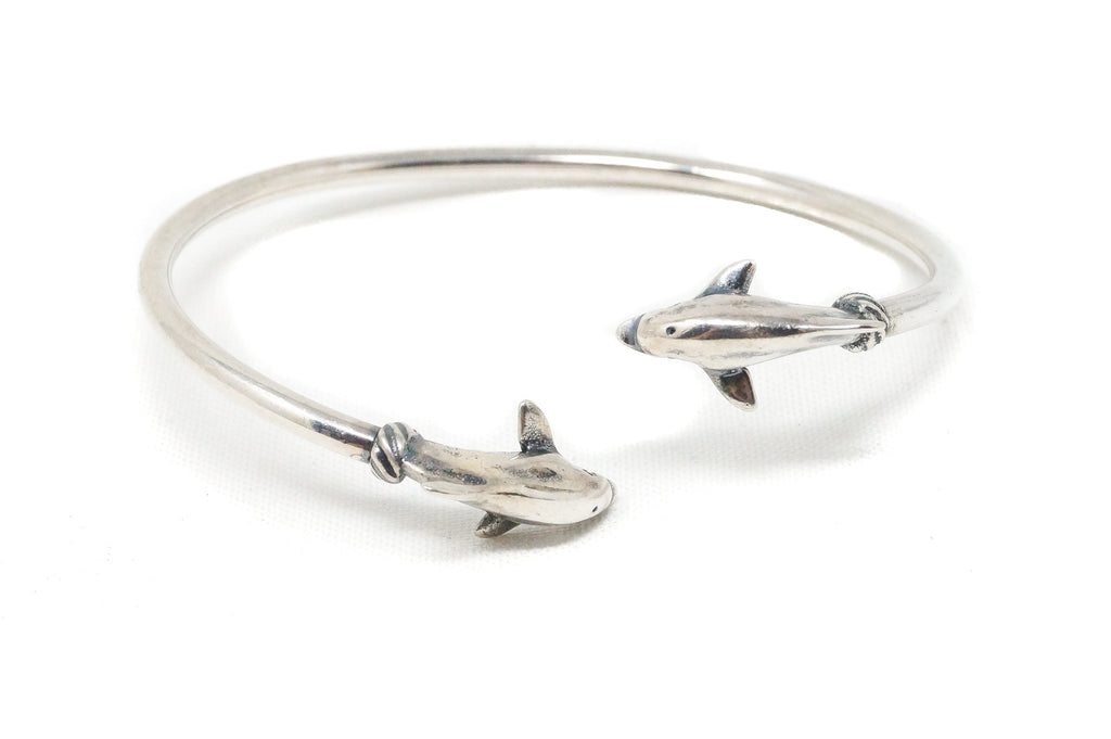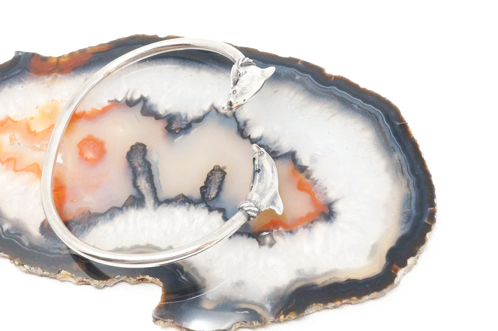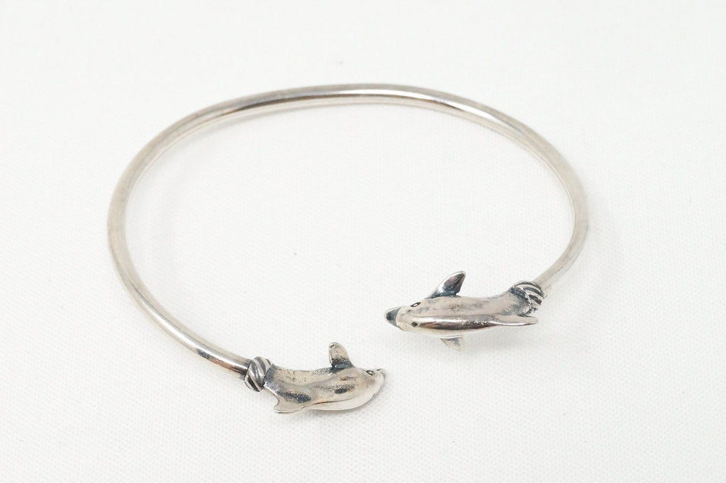 Vintage Designer KABANA Double Dolphin Sterling Silver Wrap Bracelet