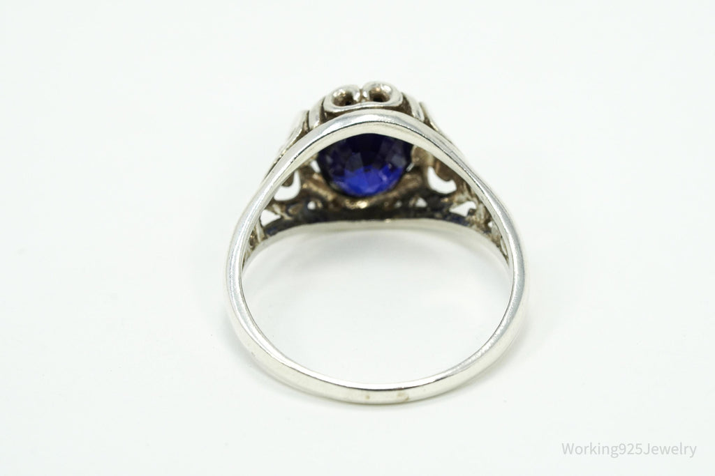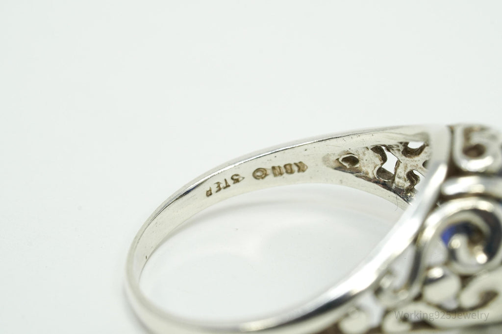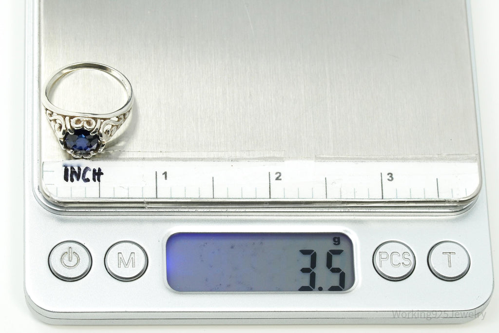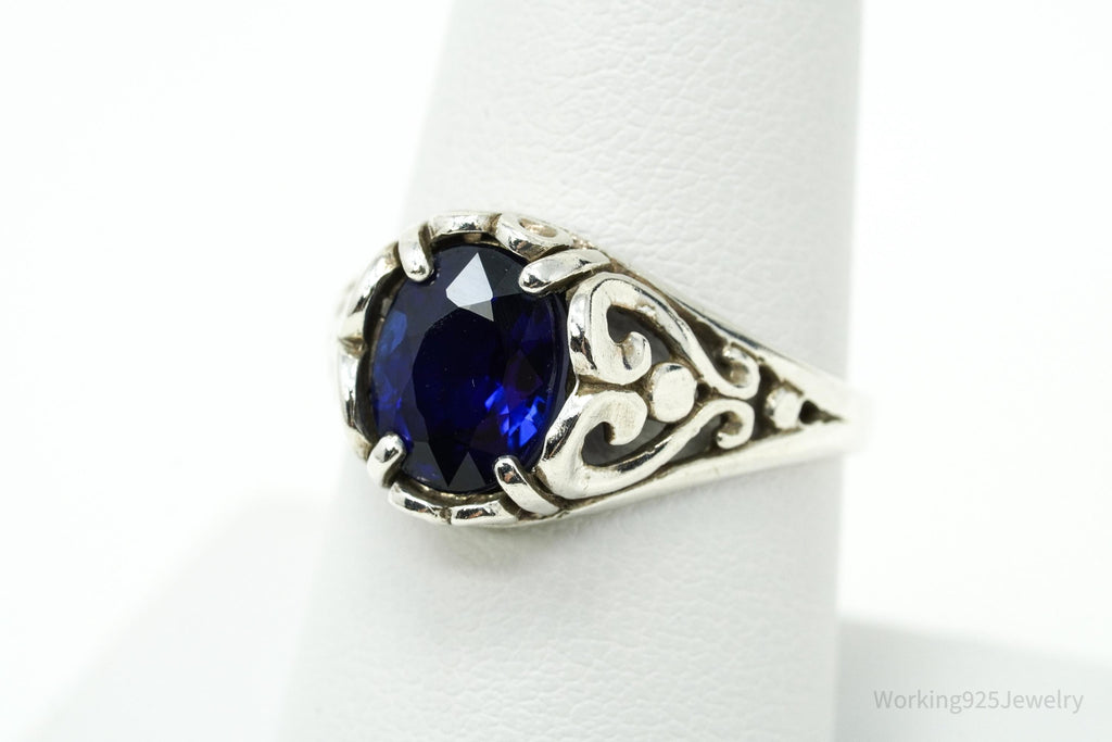 Vintage Designer Kabana Lab Blue Sapphire Sterling Silver Ring - Size 8.25