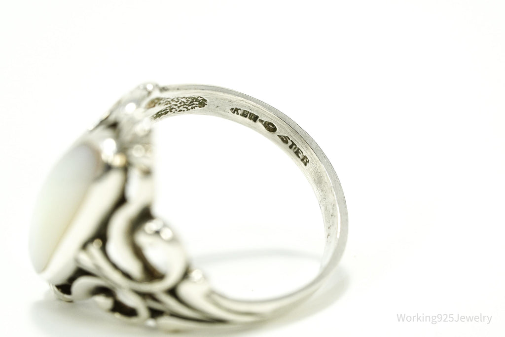 Vintage Designer Kabana Mother Of Pearl Sterling Silver Ring - Size 7