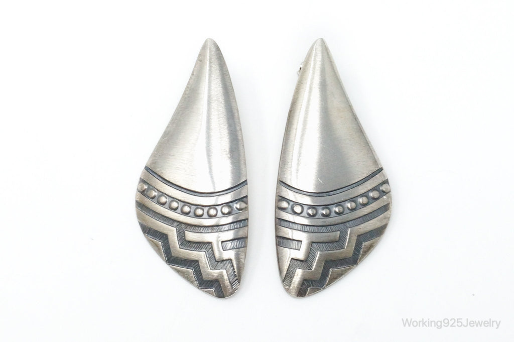 Vintage Designer KABANA Sterling Silver Southwestern Style Earrings