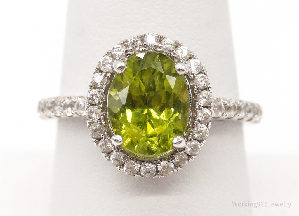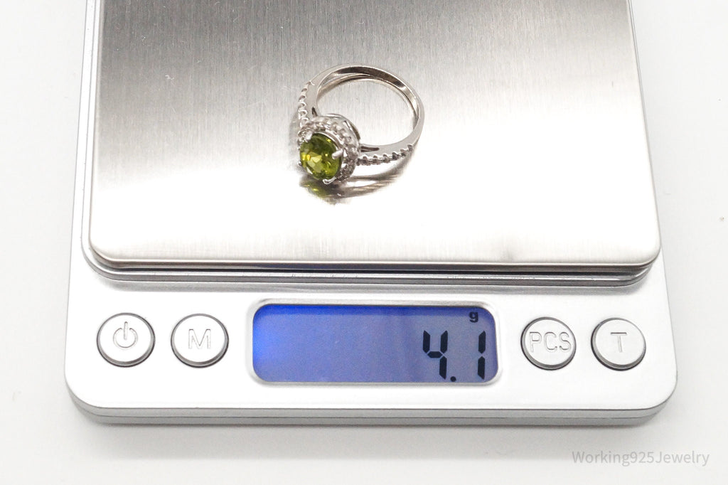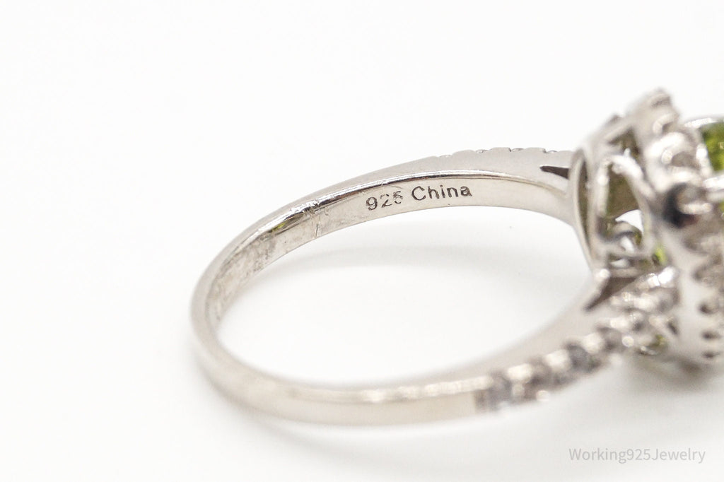 Vintage Designer KJC Peridot Cubic Zirconia Sterling Silver Ring - Size 8