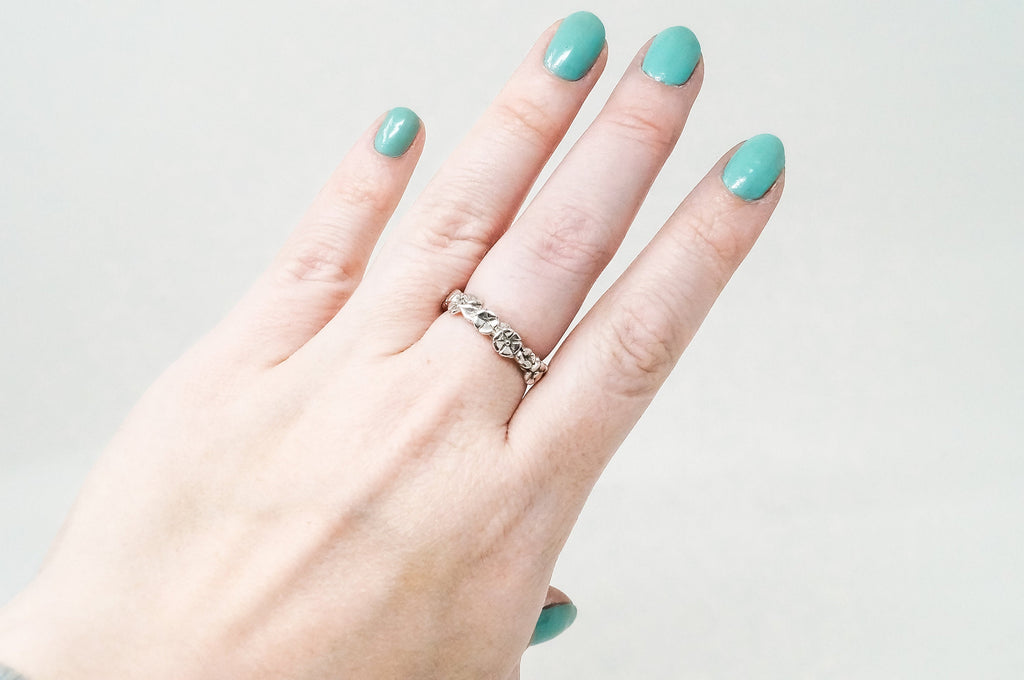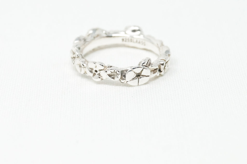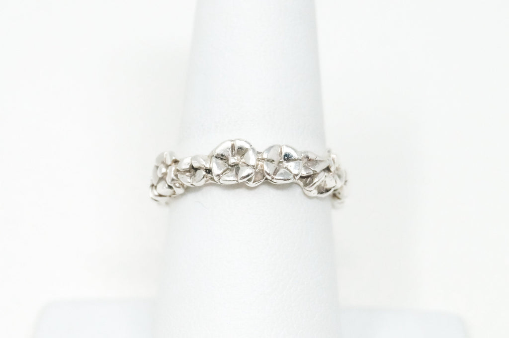 Vintage Designer LAA Floral Flower Band Sterling Silver Ring Sz 7.25 -784624348