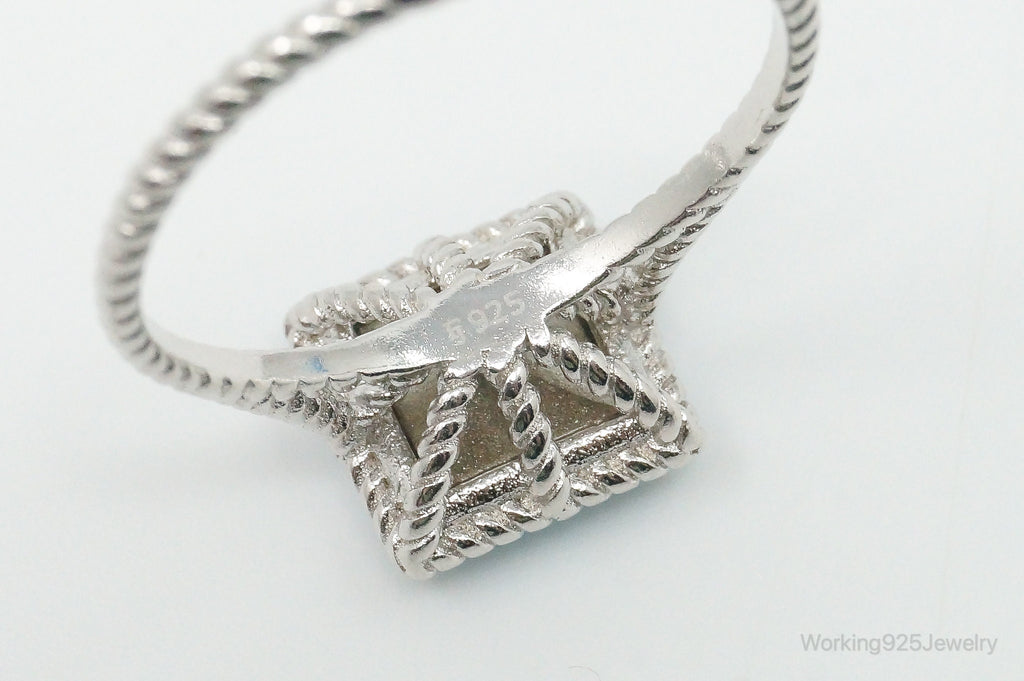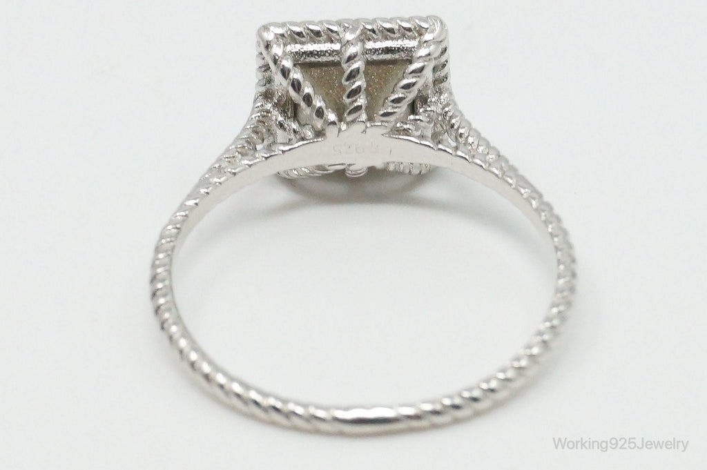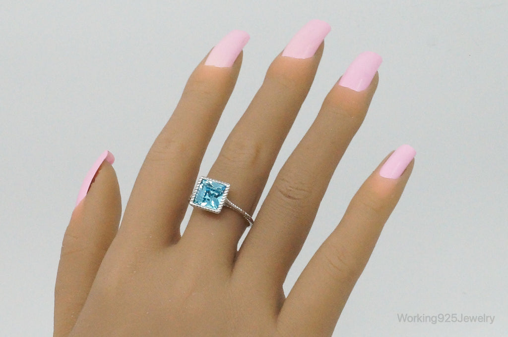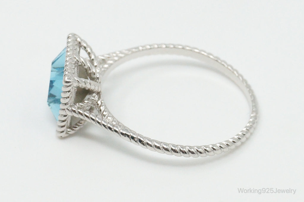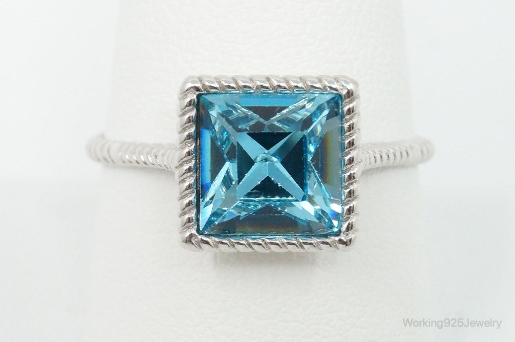 Vintage Designer Large Blue Crystal Sterling Silver Ring - Size 10
