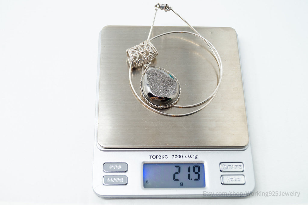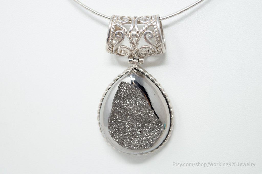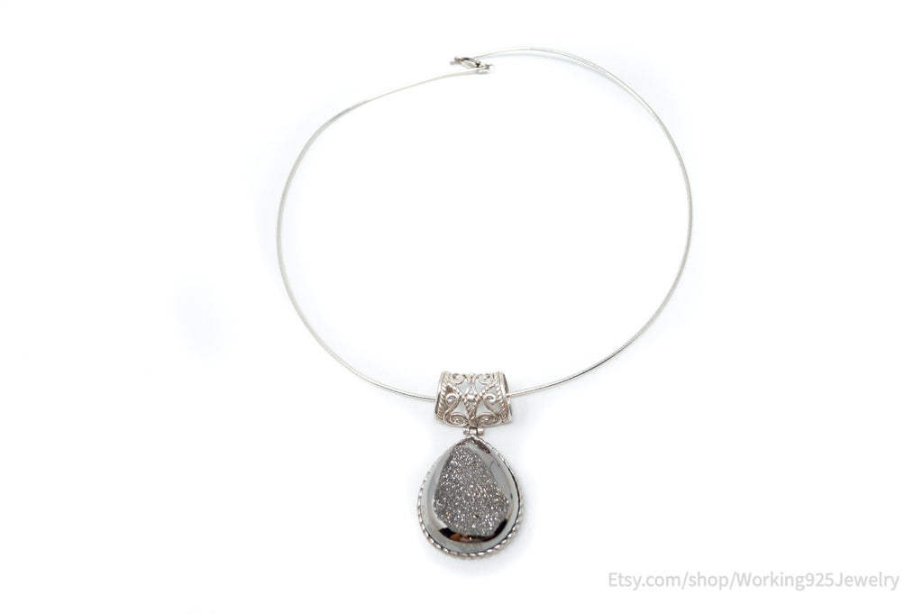 Vintage Designer Large Hematite Scroll Sterling Silver Necklace