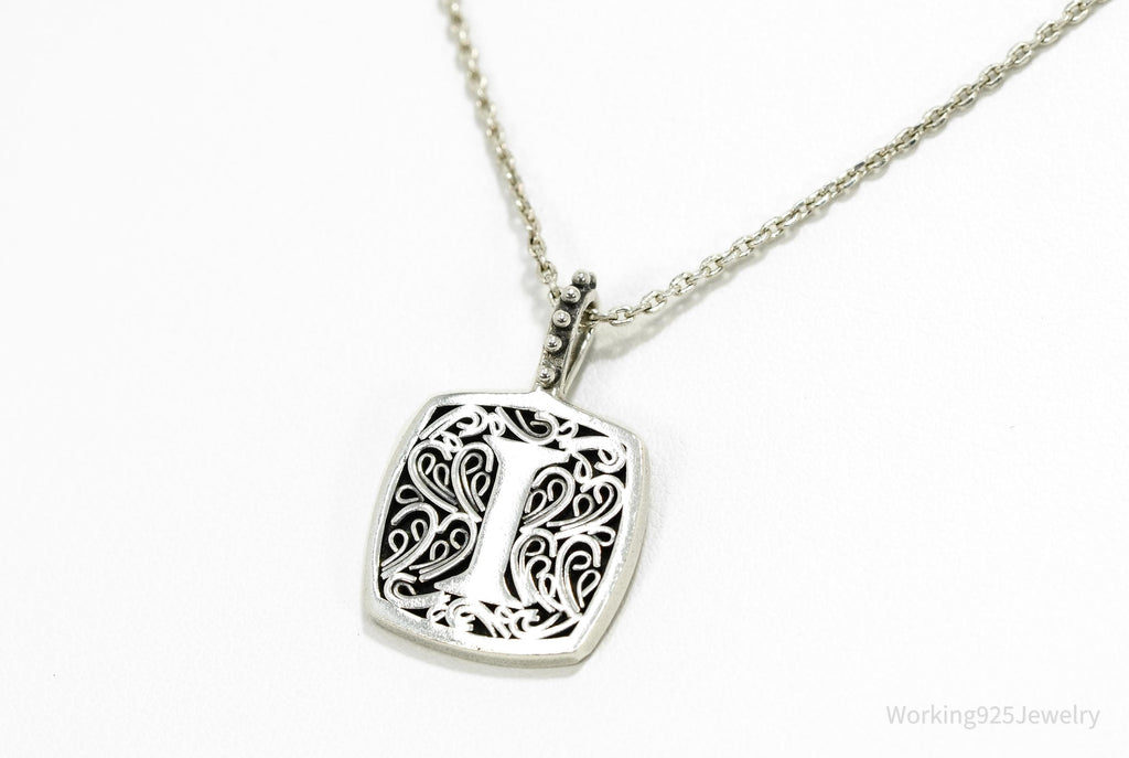 Vintage Designer Lori Bonn Initial I Pendant Sterling Silver Necklace 15"