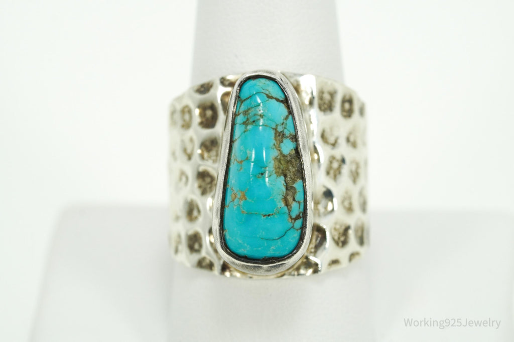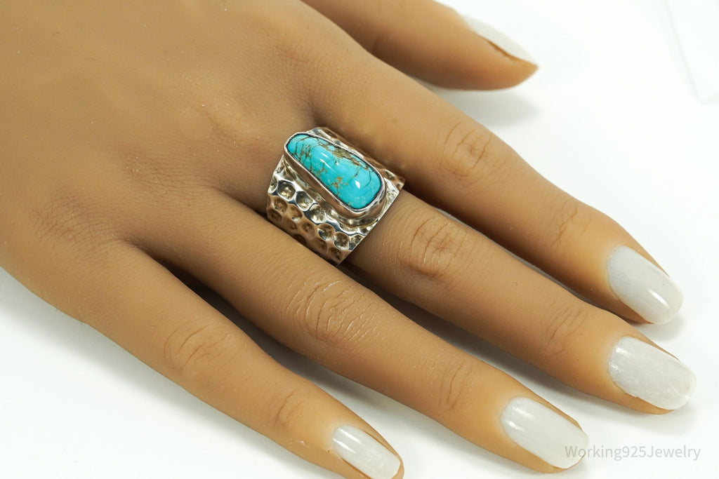 Vintage Designer Madeline Andree Turquoise Sterling Silver Ring - Size 10