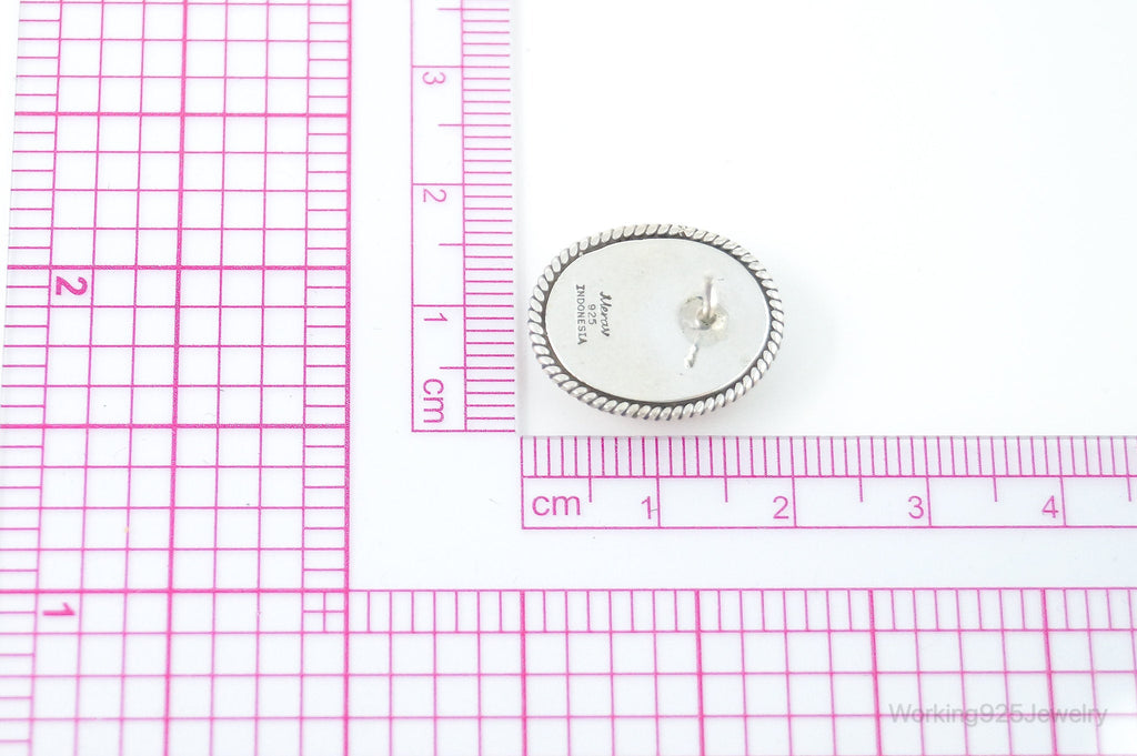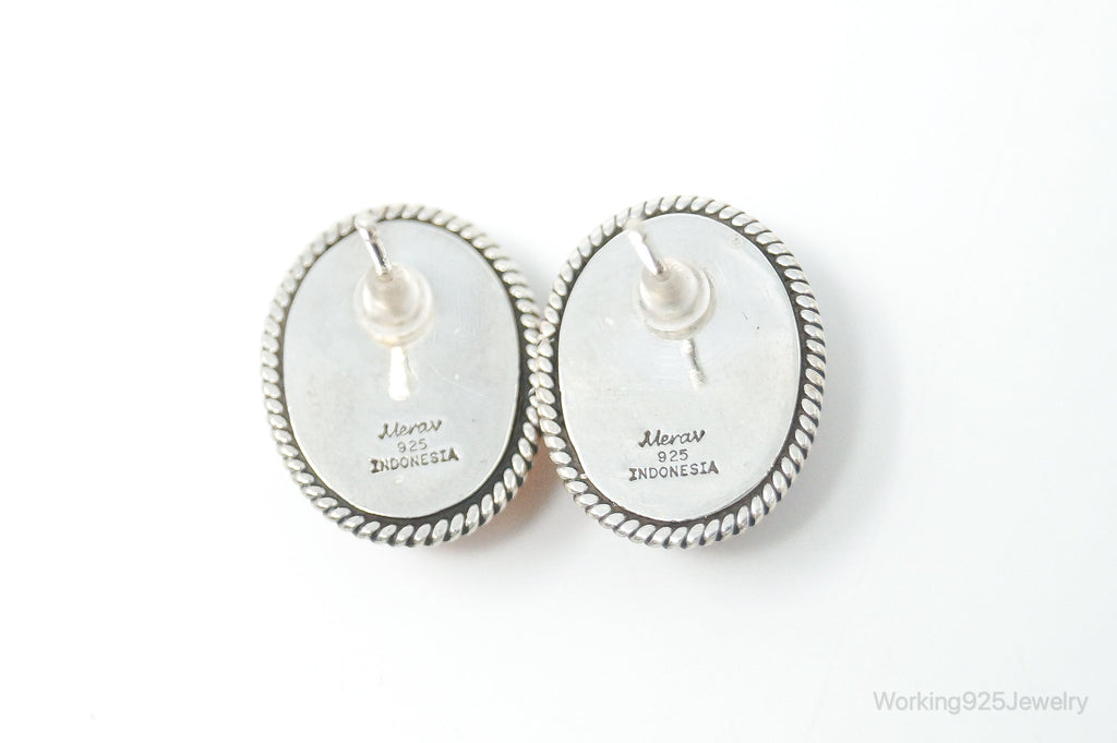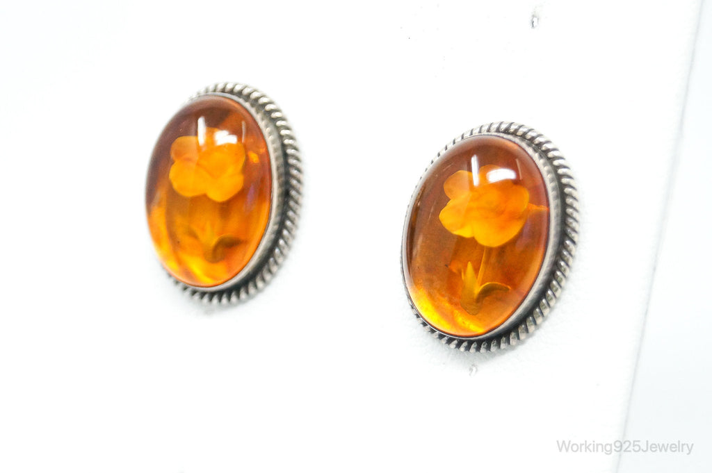 Vintage Designer Merav Flower Cameo Amber Sterling Silver Earrings
