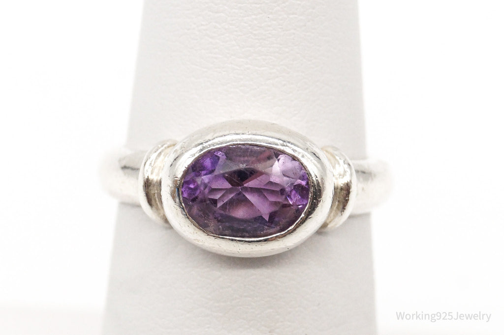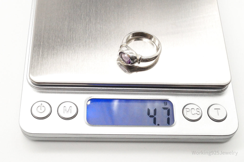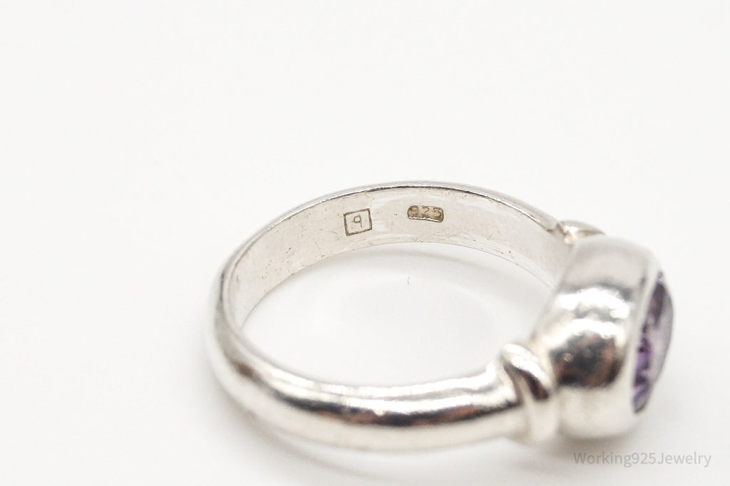 Vintage Designer Modernist Amethyst Sterling Silver Ring - Size 6