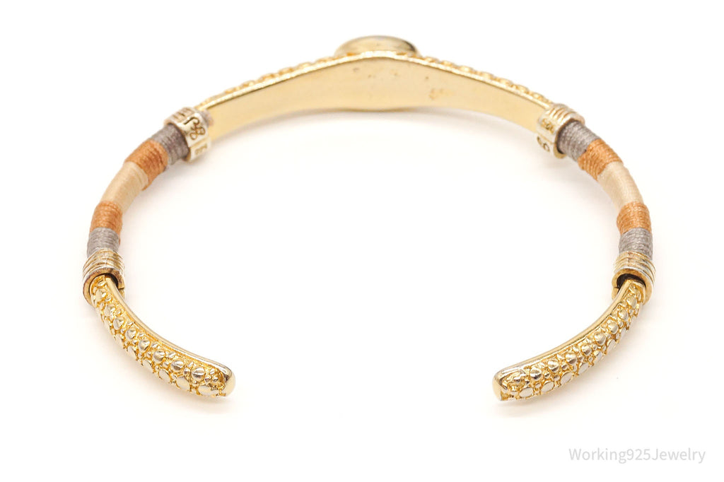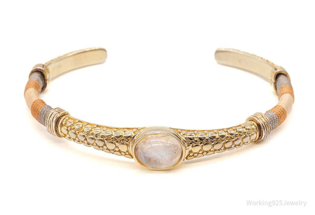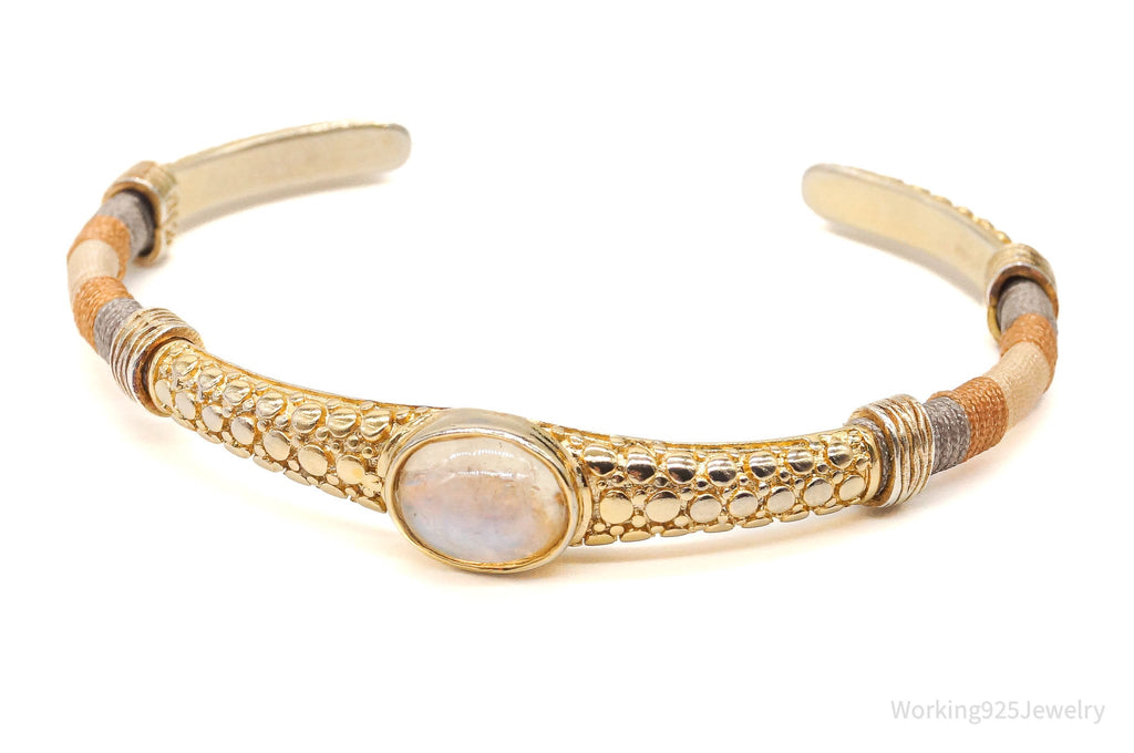 Vintage Designer Moonstone Gold Vermeil Sterling Silver Cuff Bracelet