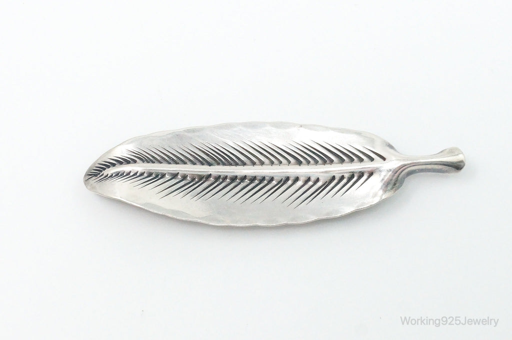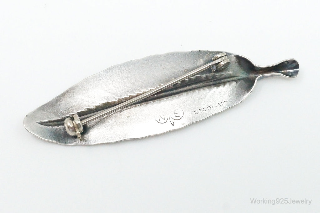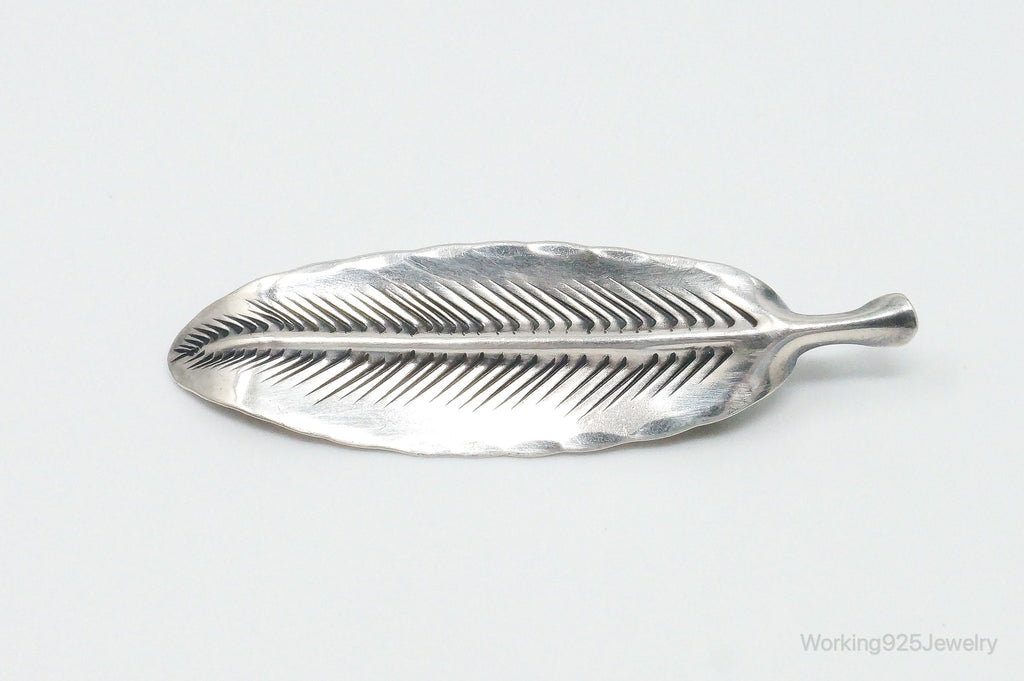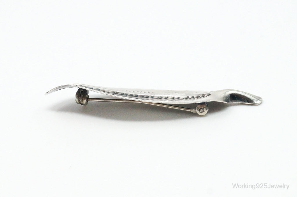 Vintage Designer NYE Modernist Feather Sterling Silver Brooch Pin