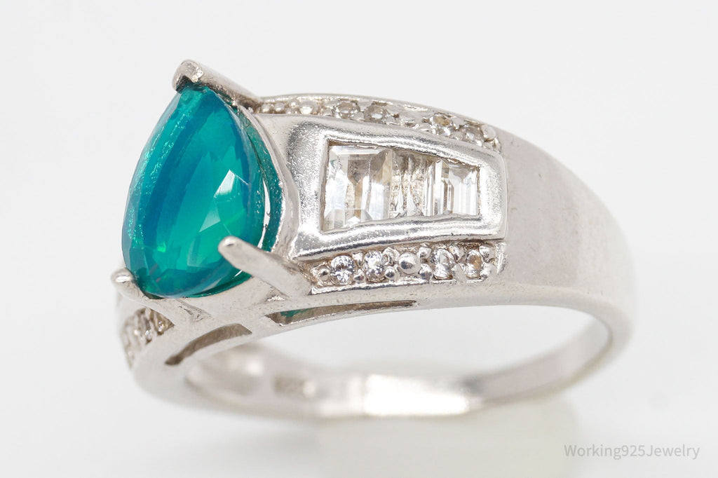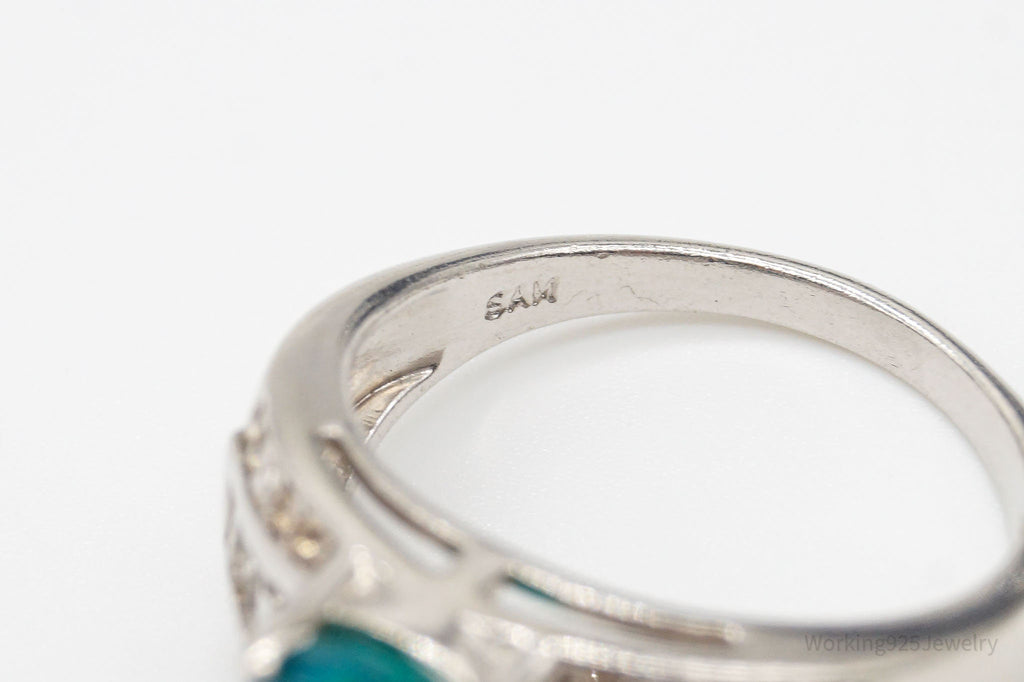 Vintage Designer Opal White Topaz Sterling Silver Ring - Size 8.5