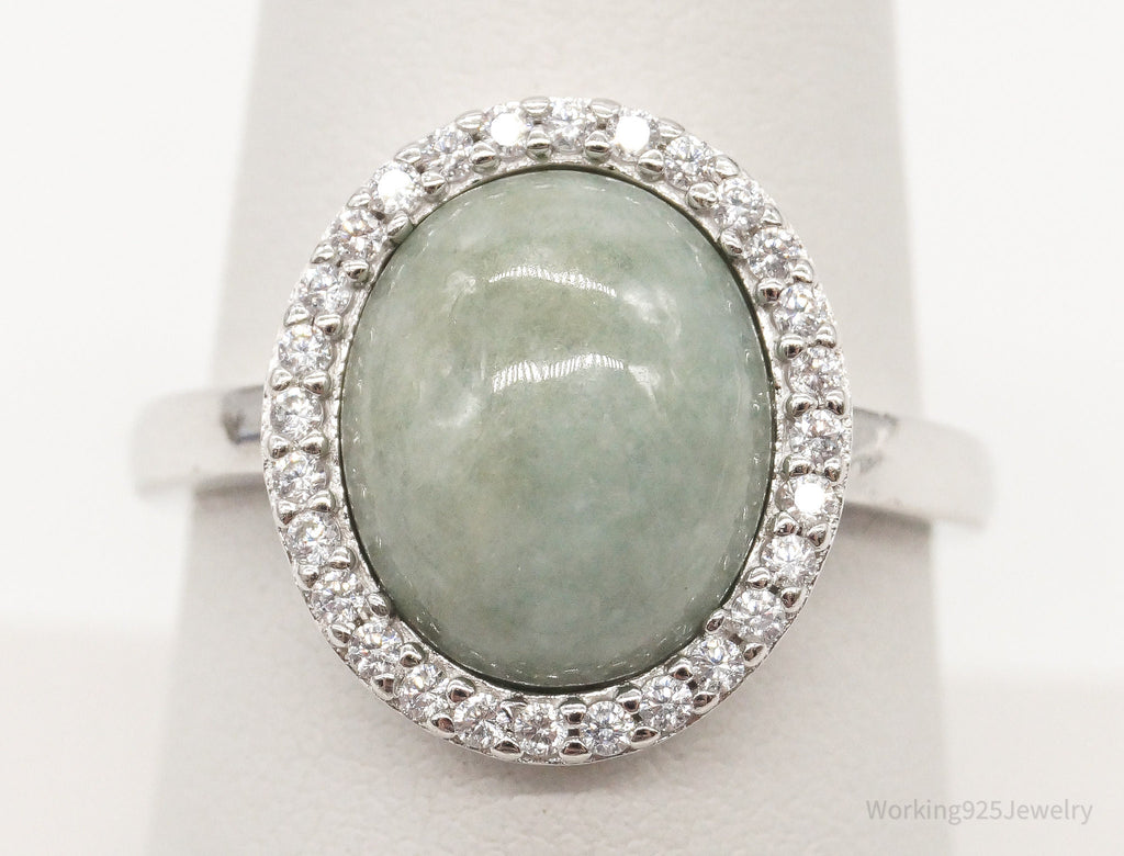 Vintage Designer Paj Jade Cubic Zirconia Sterling Silver Ring - Size 8