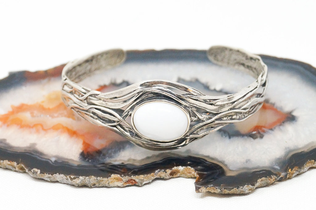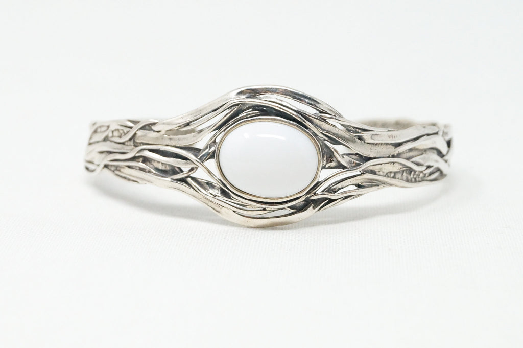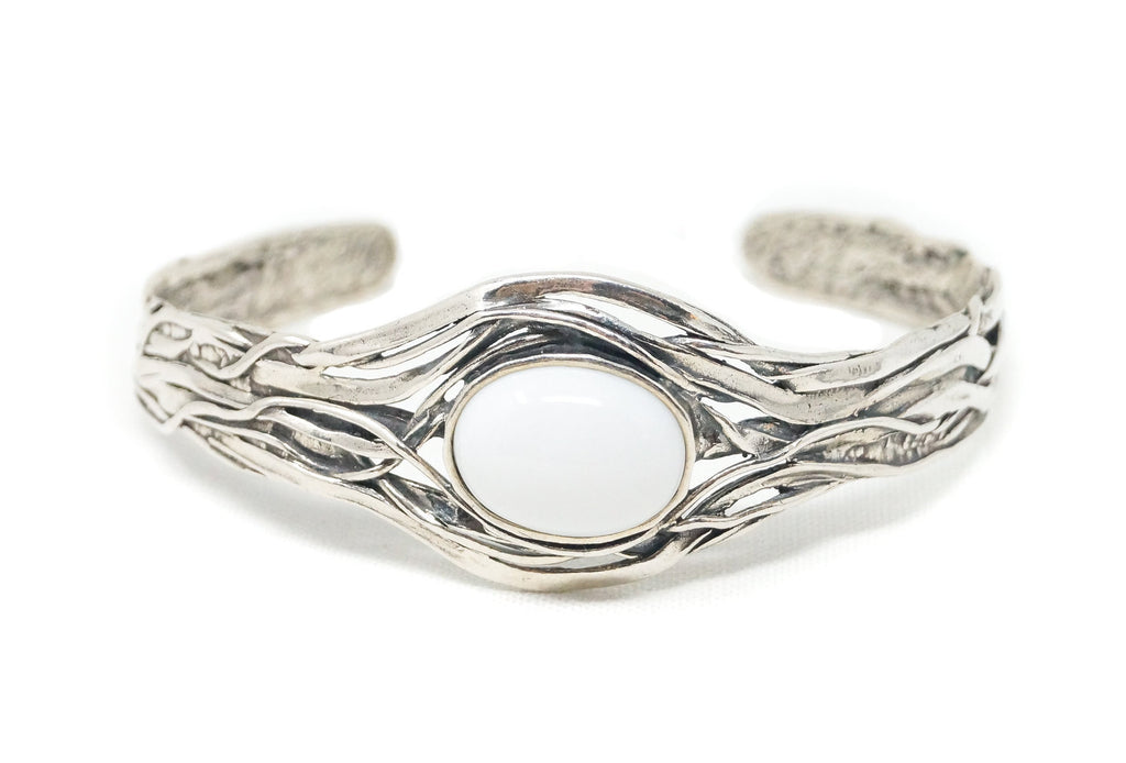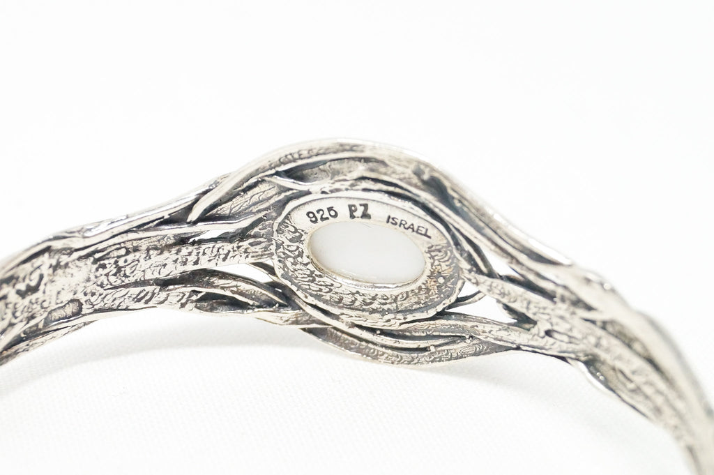 Vintage Designer Or Paz Israel Textured Rolo Link Sterling Silver Bracelet with Rose Pearl and Feather Charms
