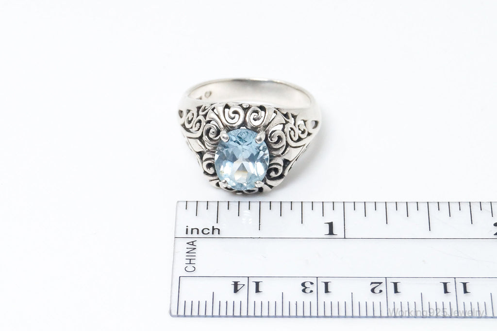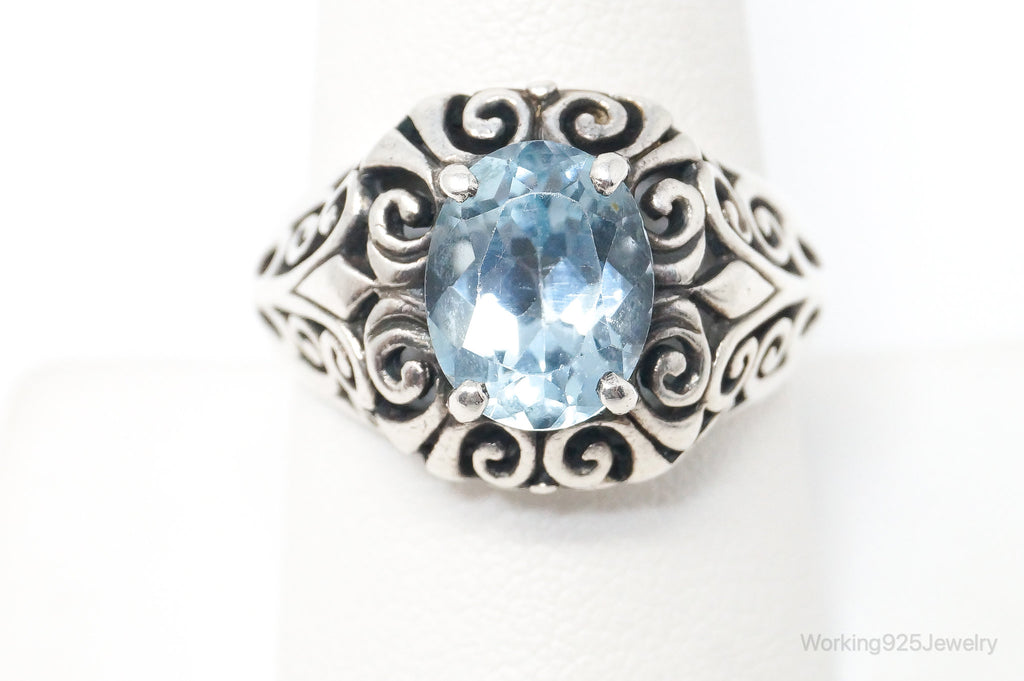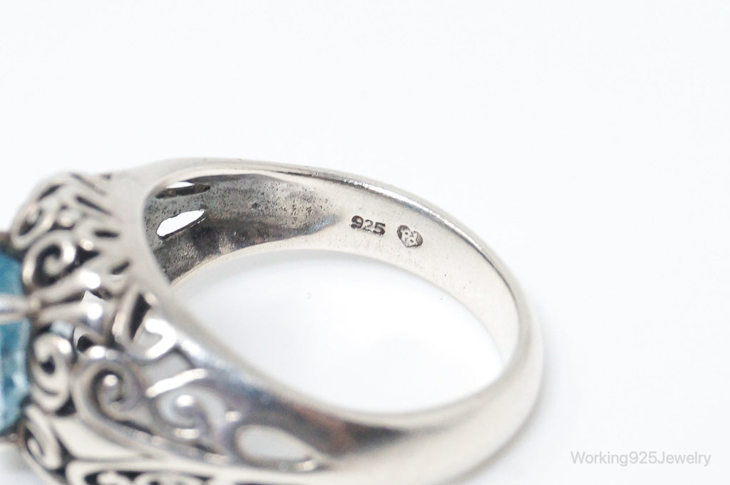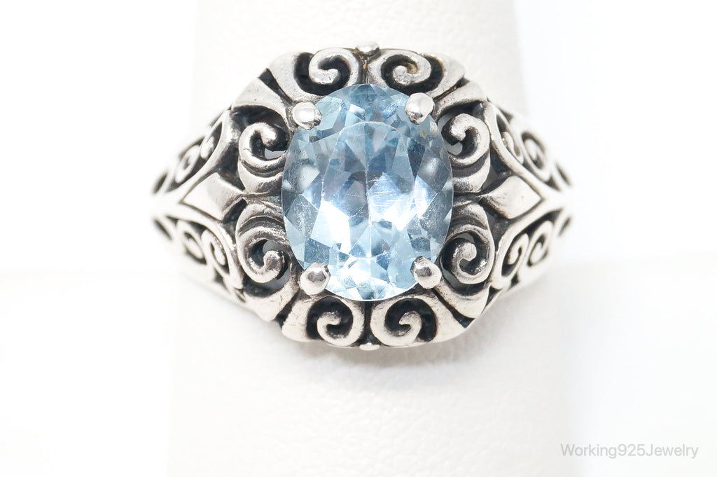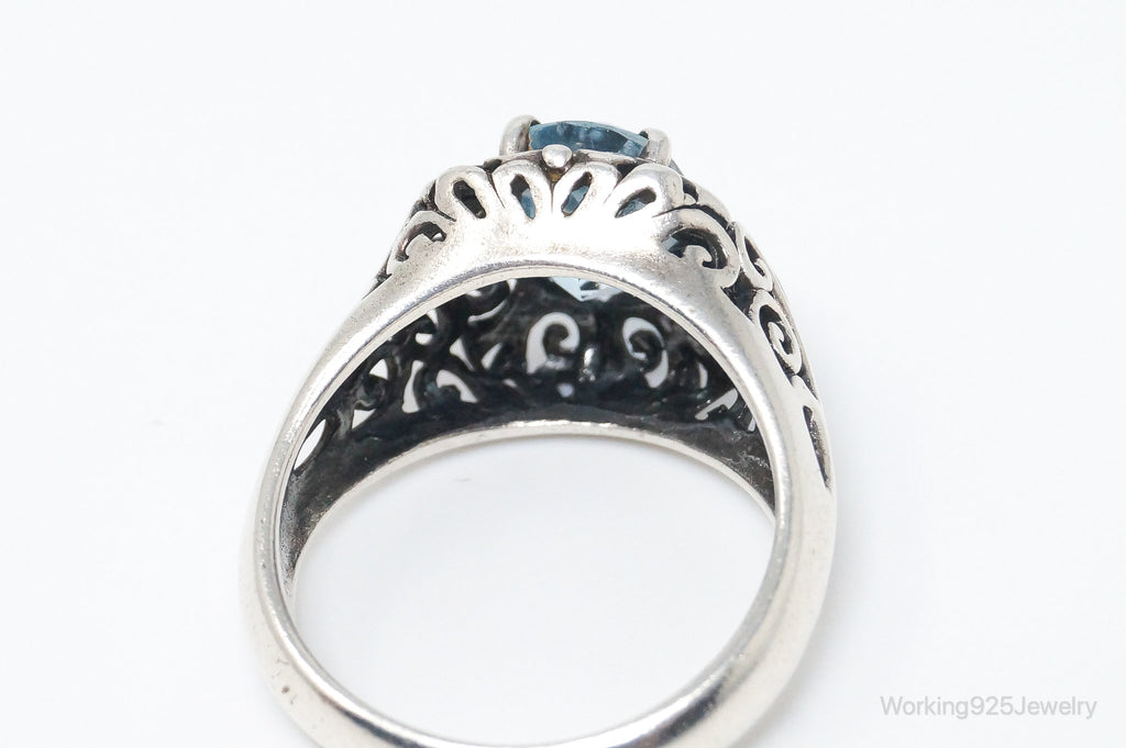 Vintage Designer PD Blue Topaz Art Deco Sterling Silver Ring - Size 8.75