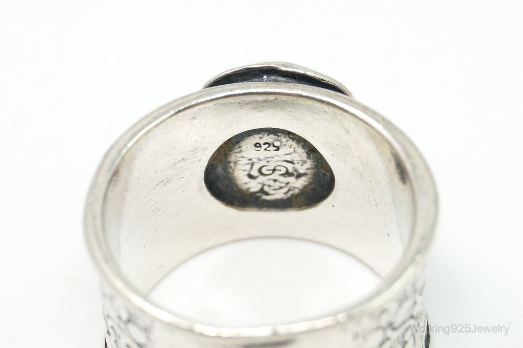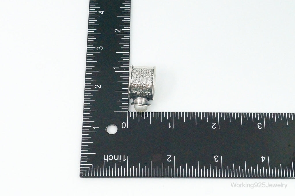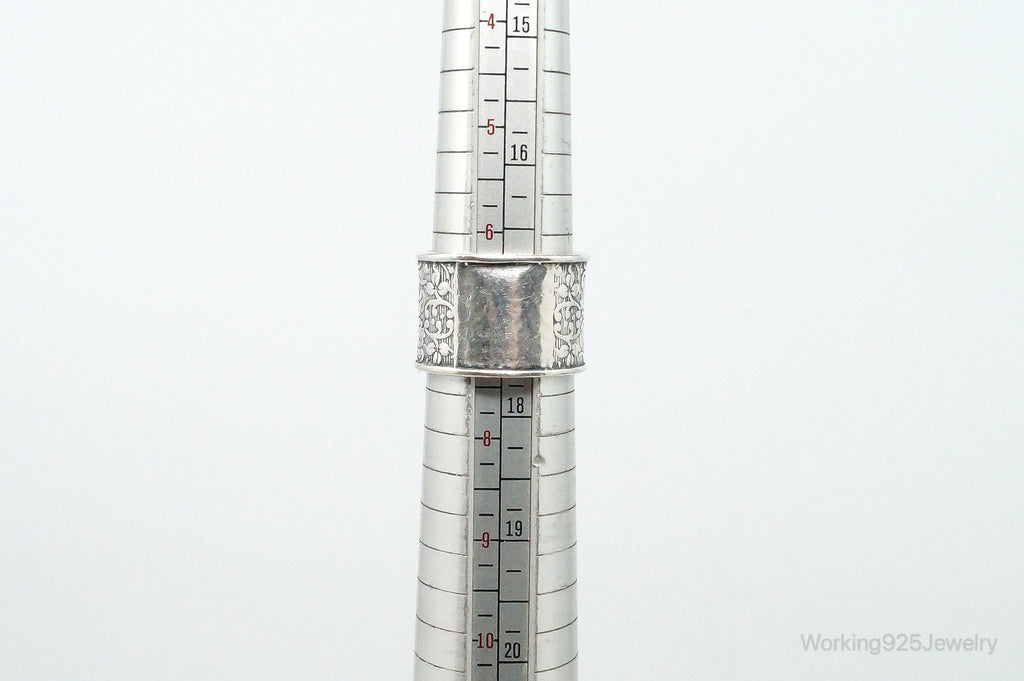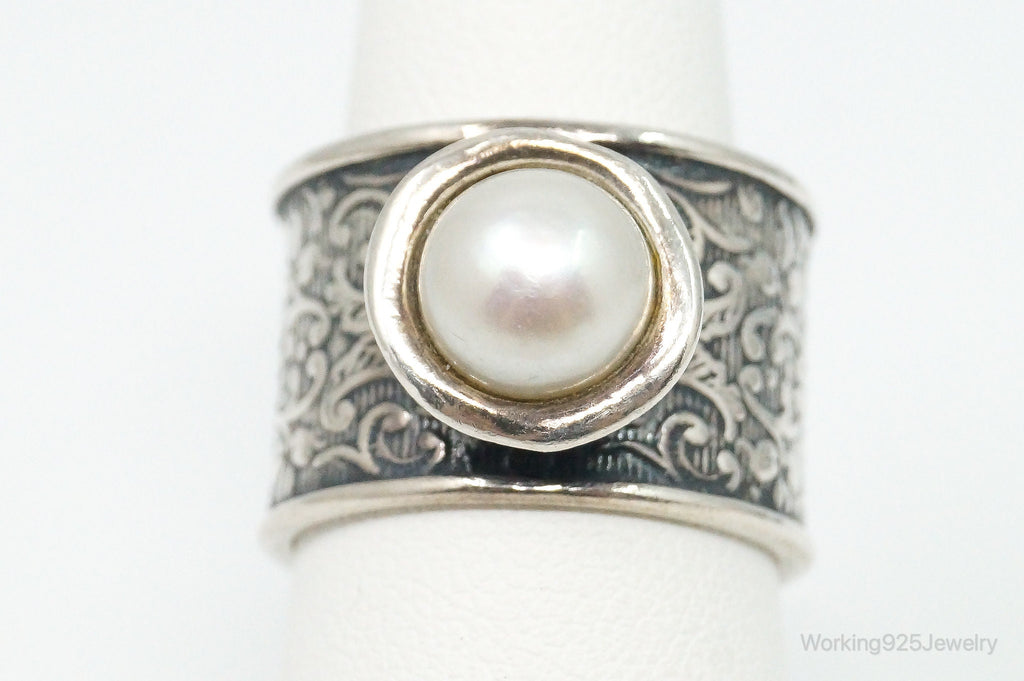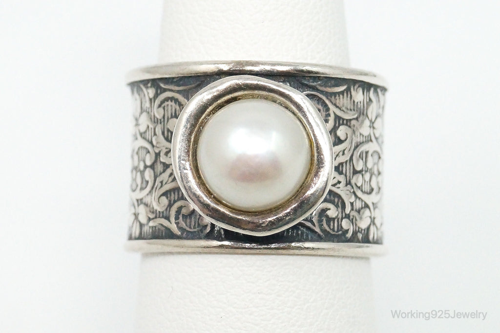 Vintage Designer Pearl Sterling Silver Etched Band Ring - Size 7.25