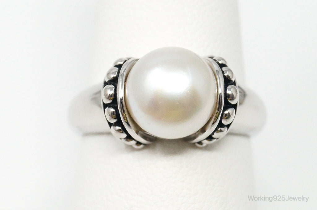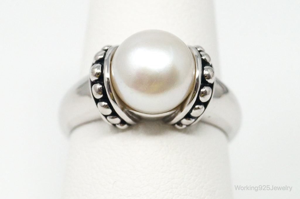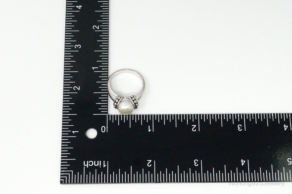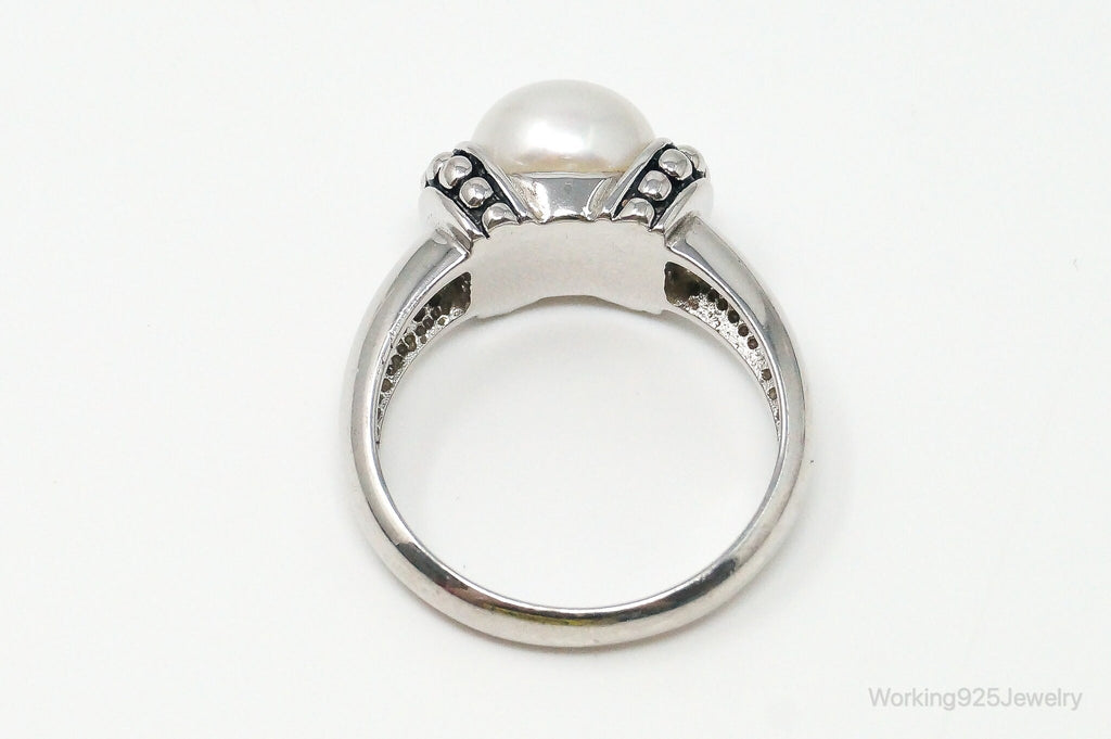 Vintage Designer Pearl Sterling Silver Ring - Size 8